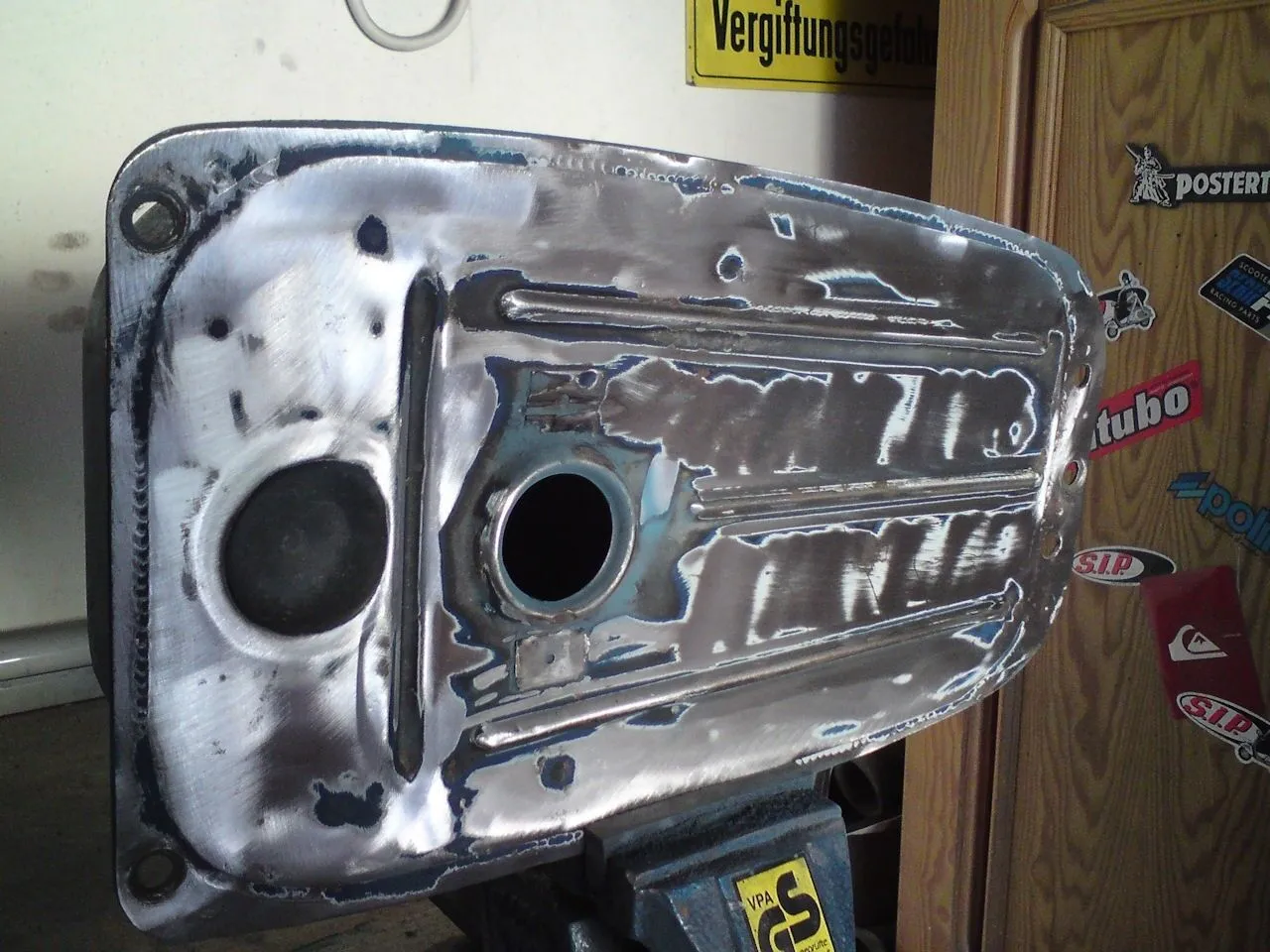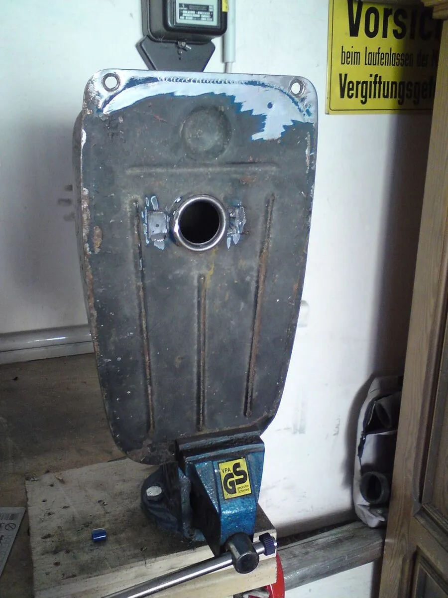Nach der ganzen Aktion und kein Bock mehr auf Elektrik, widmete ich mich dem "neuen" Tank. Tankverschluss musste weg, da ich sonst meine Sitzbank nicht mehr schließen kann.