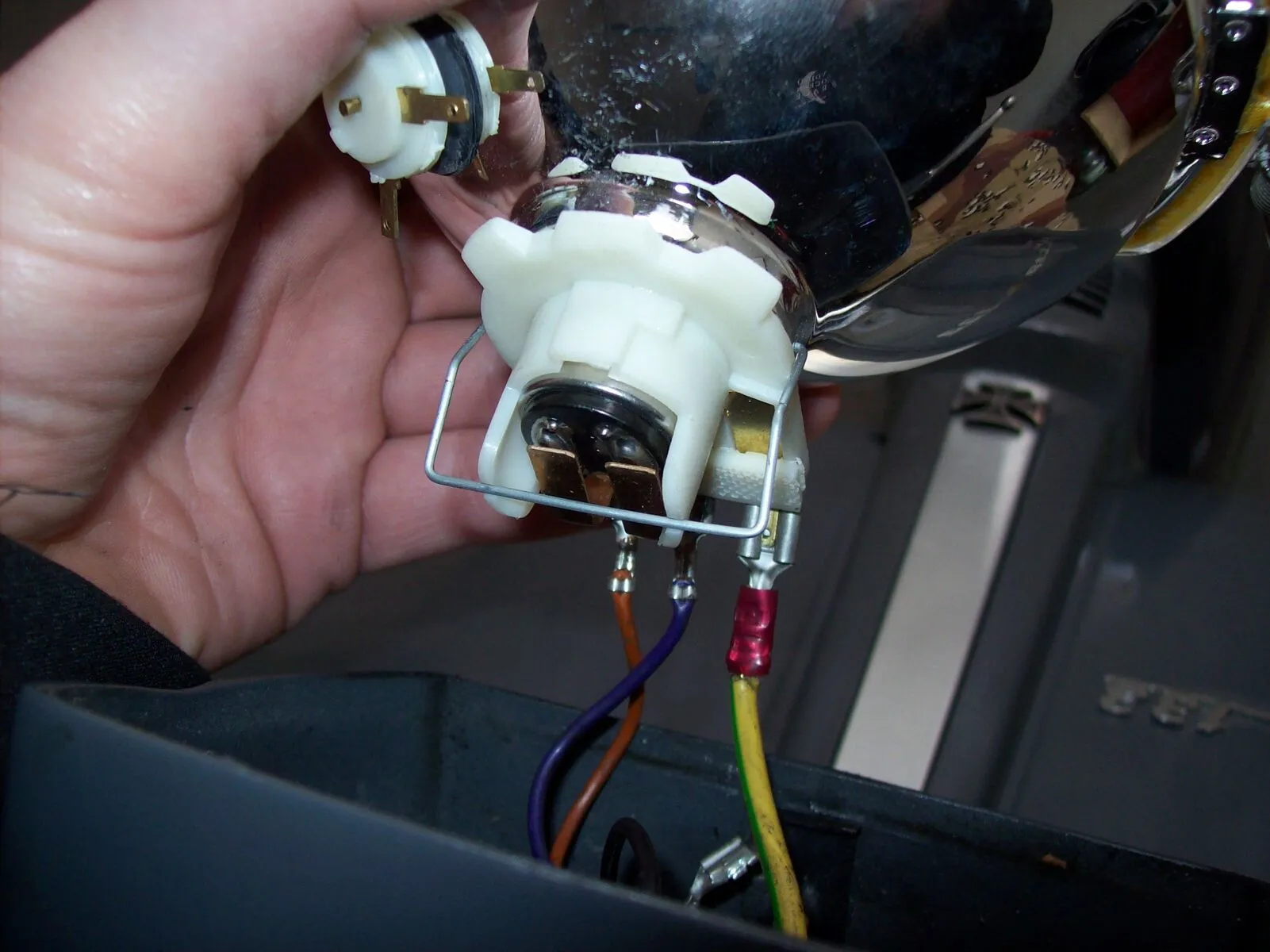 Hab mir nen Bilux Scheinwerfer gekauft und verbaut. Die Laschen hab ich erwärmt und vorsichtig nach hinten gebogen.