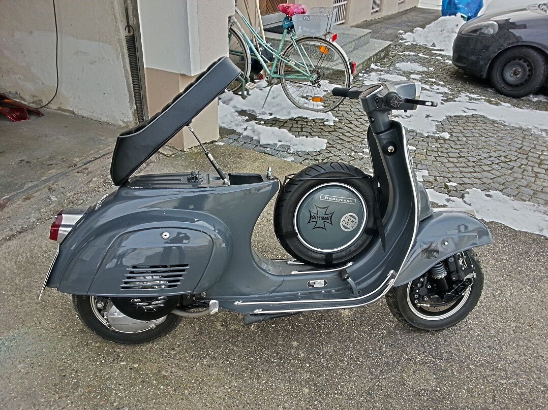 Mein nächstes Projekt ist schon fertig. Vespa ET4 neu lackiert und gestyled für meine Freundin. Bekommt morgen das Nummernschild