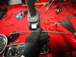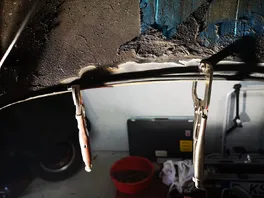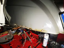 Da ich eh mal vor hatte die gute schweißen zu lassen und ggf. Karosseriearbeiten durchführen zu lassen, habe ich mich mal um die Vibrationsrisse in der Seitenbacke "gekümmert".