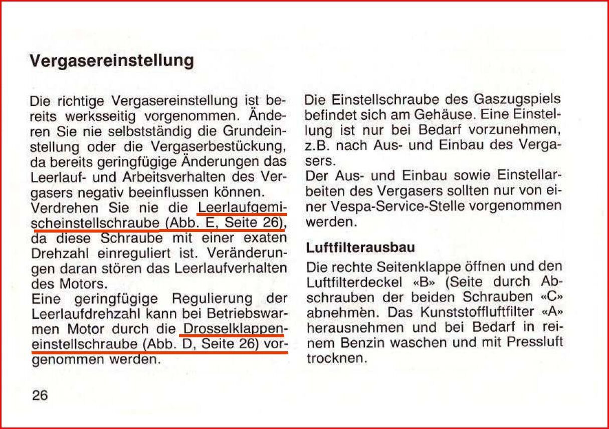 ich habe immer noch Ungewissheit über die beiden Schrauben am Vergaser bzgl. der Grundeinstellung (ca. 4 Umdrehungen raus). Welche muss ich in die Grundeinstellung bringen? Die durch die Abdeckung des Luftfilters raus schaut oder die Schrube hinter dem Stopfen?
