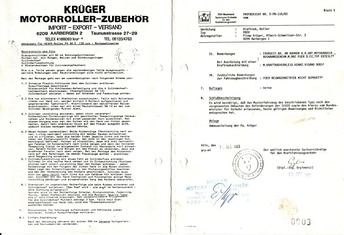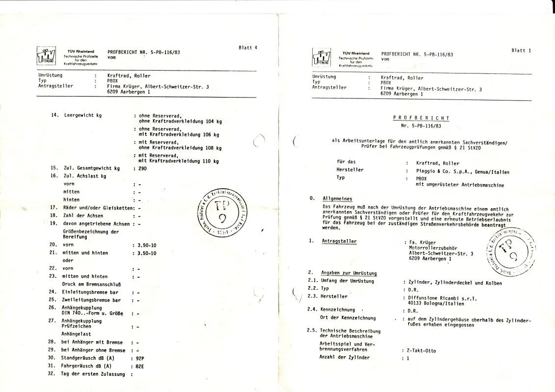 lassen,bei meiner P80X Lusso Bj 91.Der Prüfer wollte nicht einmal den eingebauten Zylinder sehen