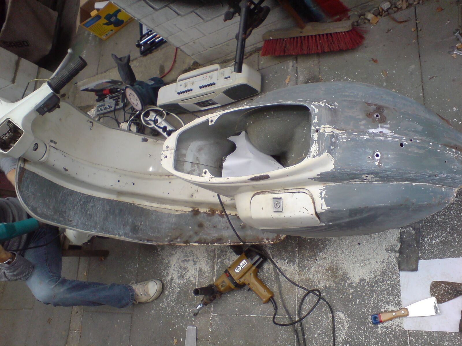 da die vespa auch innen am radlauf schon rost hat kommst ums zerlegen nicht herum, falls du es richtig machen willst!