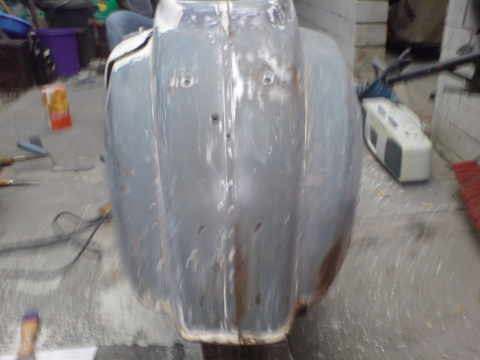 da hast wirklich nen guten kauf gemacht. noch a bissl arbeit in sachen genaues abschleifen, noch vollständig zerlegen, hier und da noch etwas rost weg und du kannst gut grundieren. auch von beulen scheint die gute weitestgehend verschont geblieben zu sein.