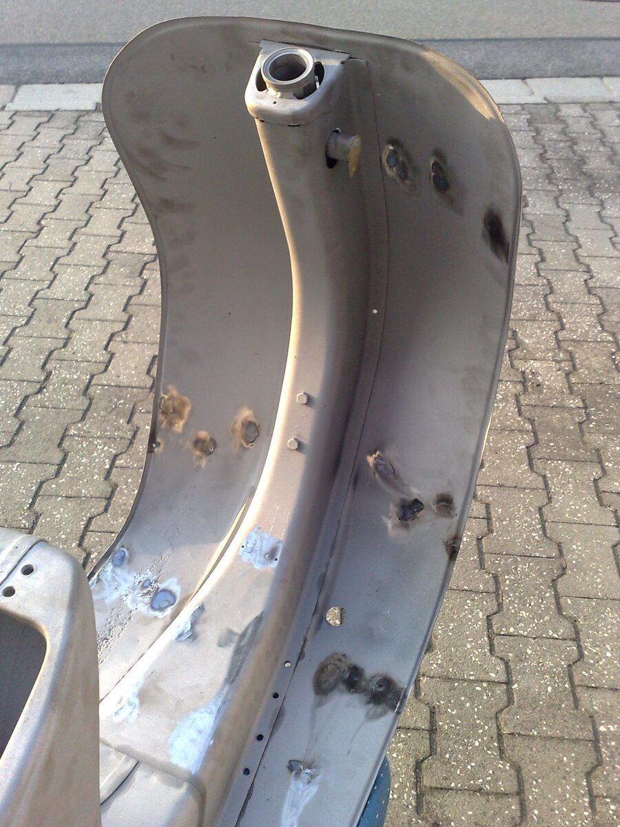 heute den rahmen und anbauteile vom sandstrahlen geholt. die rostlöcher haben sich in grenzen gehalten.