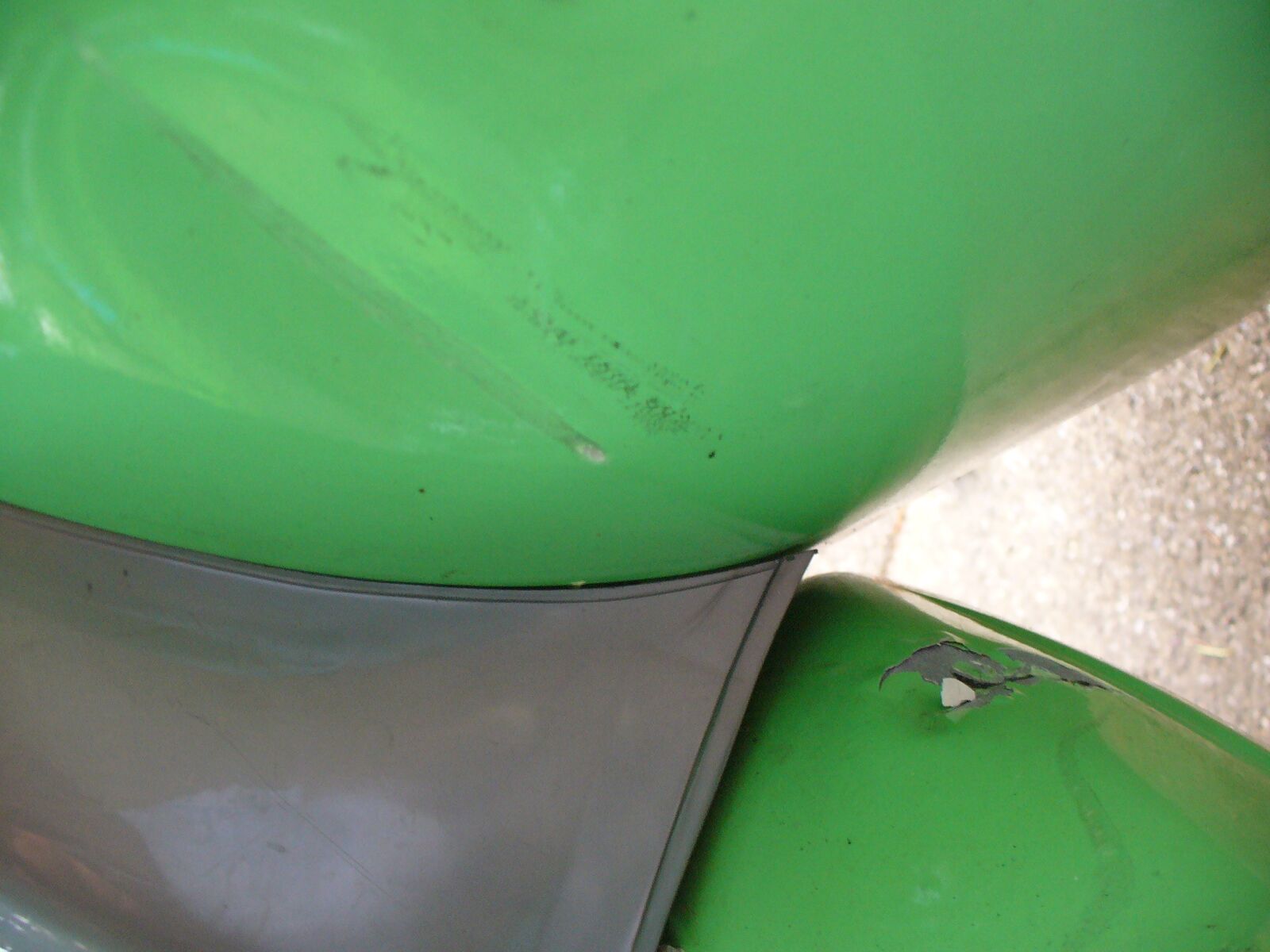 also die geschichte. ich sitz gerade draußen und rauch eine als mir auffällt dass an meinem kotflügel irgend ein weißer punkt ist und so eine kleine delle die vorher noch nicht da war. denk ich mir: hmm wo kommt des den her. geh näher her und schau es mir näher an. eine riesen delle am kotflügel wo der lack übelst abblättert und eine delle im beinschild. ich weiß nicht wie des da hin kommt da man diese position eigentlich nicht wirklich jm anfahren kann. wahnsinn nervt mich des. da investiert man hunderte von eure in sein baby und dann kommt so en daher gelaufener spasti und haut dir einfach ne delle rein. auch wenn es auf versehen war kann man ja en zettel dran hängen oder stehen bleiben. ich bin mir sicher dass es an meiner schule war weil mir die erst seit heute aufgefallen ist. sicher so en hirnverbrannter plastikscooterfahrer der zu blöd zum fahren war. ![]()