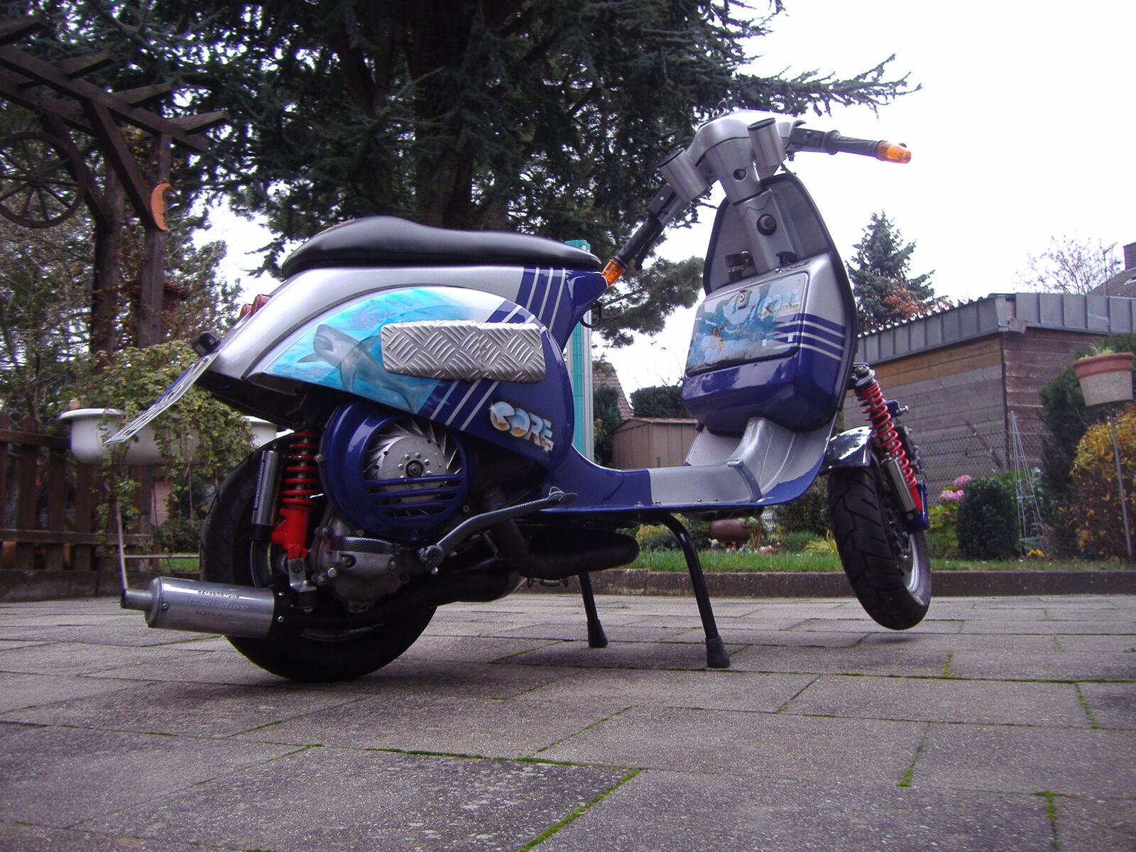 Das mit der Lackierung........ja ja ich weiß. Das Konzept ist aus den 90 ern.Der Roller wurde so ähnlich auch in silber aufgebaut. Sieht auch gut aus.