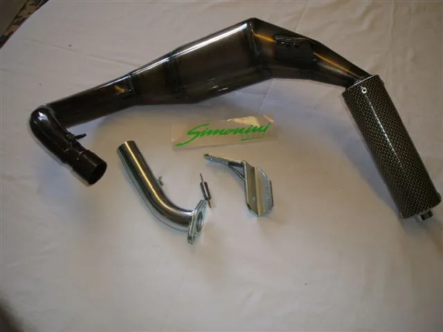 • Passen wird der Auspuff evtl. mit einiger Nacharbeit an den Befestigungspunkten bedingt durch die Tatsache, dass er eigentlich für Zylinder ab 121 ccm vorgesehen ist sowie italienische Fertigungstoleranzen, macht aber absolut NULL Sinn in Verbindung mit dem Originalzylinder oder Lahm-Tuning wie 75 ccm DR. Der Simonini wirkt erst ab ca. 7.000 U/min, also in einem Bereich, den der Originalzylinder nie erreicht. Außer wichtig aussehen wirst du damit nichts erreichen.