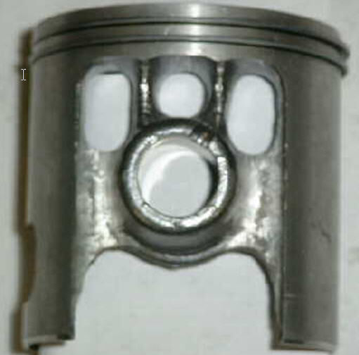 Das ist das Malossi CVF System. Der Vespamotor hat schlicht zu kleine Überströmkanäle. Wer schon Mal einen ordentlichen Zweitakter in den Händen hatte, sieht, das trotz Fräserei ein Vespamotoer nicht an die Querschnittsflächen andere Zweitakter herankommt. Das CVF System beinhaltet nichts anderes als die Erweiterung der Überströmer in den Kolben hinein. Diese werden in der Abwärtsbewegung des Kolbens durch die Öffnungen im Kolben gefüllt. Je größer sie sind, desto besser der Füllungsgrad.