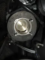 Als erstes mußt du den OT finden -Umschlagmethode mit dem Zirkel klapt ganz gut.Kolbelstoper oder improvisions Lösung einfallen lassen(Zyli ohne Kopf festschrauben-Zwei Nüsse-nicht deine-Stecknüsse aus den Ratschenkasten helfen dir weil das Gewinde der Stehbolzen nicht so lang ist auf einen Stehb. mußt du dir so was wie unten bauen) nun dreh in die eine Richtung. Suche dir ne Gut ereichbare Stelle auf der linken unteren Seite-stopt der Kolben mach ne Makierung-dann in die andere bis stop- wieder Makierung nun nimmst du nen Zirkel stellst irgend ein Maß(ich denk nur ans Saufen) 10 cm fürs erste-dann weiter machen bis sich irgend wann die Mitte OT ergibt mit dem Schraubendreher ne Nut Schlagen (genau arbeiten)und mit nem Wasserfesten Stift OT dazu schreiben.Nun befestigst du nen Draht(Stabil) unter der Nuß mit der du den Zyli festgeschraubt hast und machst den Kolbenstoper raus.Druckst dir ne [lexicon='Gradscheibe',''][/lexicon] aus-klebst die auf nen stabielen Pappendeckel und schneidest sie aus.Die Mitte mit nen Nagel durchbohren(genau arbeiten)Klebeband verdrehen und in dünnen streifen auf das Polrad kleben beidseitiges Klebeb. tuts auch.Nun die [lexicon='Gradscheibe',''][/lexicon] so auf das Polrad drücken das die OT Makierung in der Nähe des Drahtes ist, mit dem Nagel in das Loch(Vertiefung) der Kurbelwelle stecken waggerecht halten und [lexicon='Gradscheibe',''][/lexicon] auf das Polrad drücken-Nagel entfernen.Draht auf OT Makierung stellen und nun in die Richtige Richtung drehen und alles schön aufschreiben und Makierungen auf der [lexicon='Gradscheibe',''][/lexicon] machen.-Viel Spaß damit.