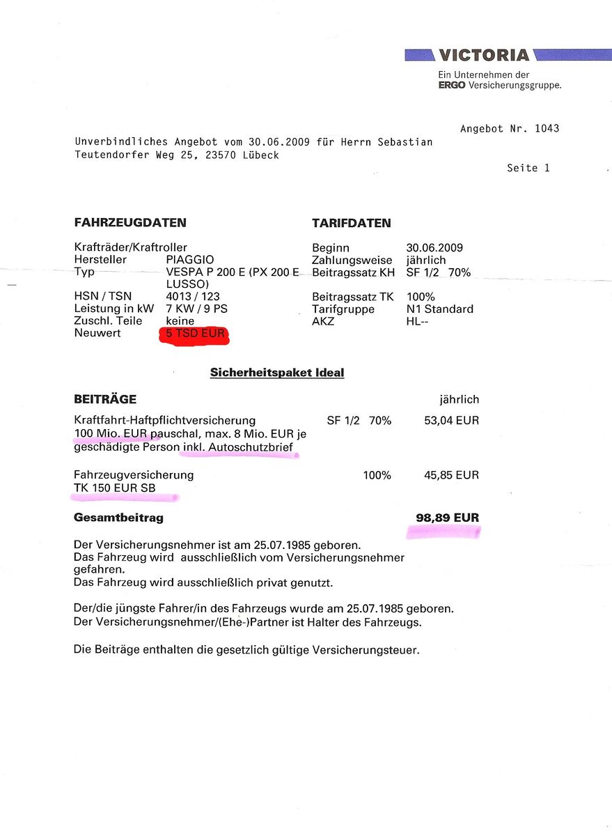 Aber bei dir steht "Neuwert". Der Neuwert bezieht sich auf dein Baujahr. Damals war deine Vespe dann 5000€ Wert, dass war aber vor X Jahren.