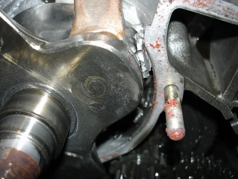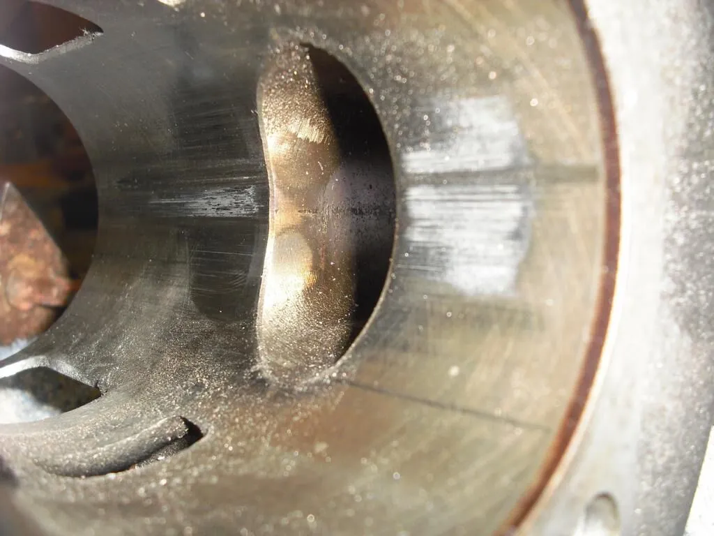 Ein Teil des Kolbenhemds materialmüde zerbröselt und zwischen Kabawelle /Kuwegehäuse geklemmt.