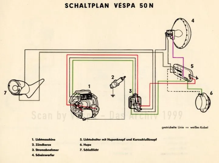 Sorry - noch zur Erklärung: Es handelt sich um eine V 50 N, bislang ohne Blinker und Bremslicht. Ich möchte eigentlich auch nur einen Zündfunken, Licht und die Schnarre.....