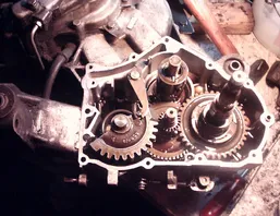 Hi, das mit dem Gewinde ist ne gute Idee, nur muß das Gewinde mindestens die gleiche Stärke habe wie das Abgerissene. Wegen der Belastung) und das geht nun mal nicht. Dahinter befindet sich das gesamte Getriebe mit der Untersetzung und ggf dem Kickstarter. Deine Welle ist die Mittlere oben. Am Rand kannst Du sehen welche Schrauben raus müssen. Zuerst Oel ablassen, dann Hinterrad mit Trommel abschrauben und dann alle Schrauben auf dem Bild. Achtung Schrauben sind unterschiedlich lang. Eine gescheite explo Zeichnung hab ich nicht. Rep-Anleitung kommt per Mail. Achtung ist das ältere Modell passt aber in etwa.