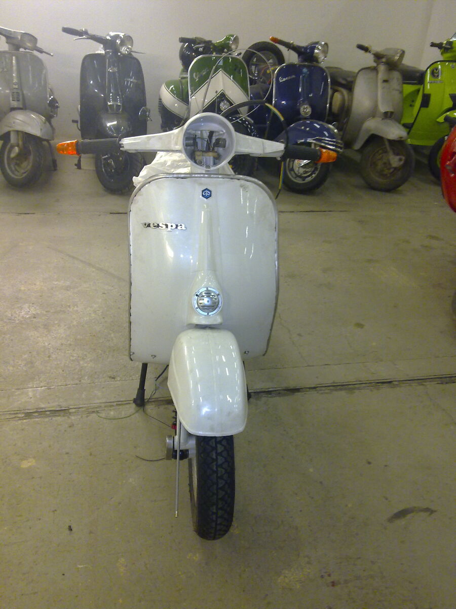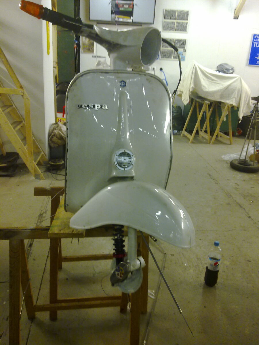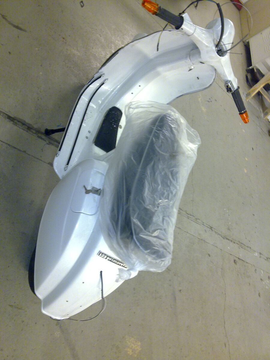 sie steht, sie rollt, ich hoffe, sie stinkt auch, wenn der motor läuft. jetzt muss ich dem christian noch seinen langhubkrümmer mit dickem rohr aus den rippen leihern