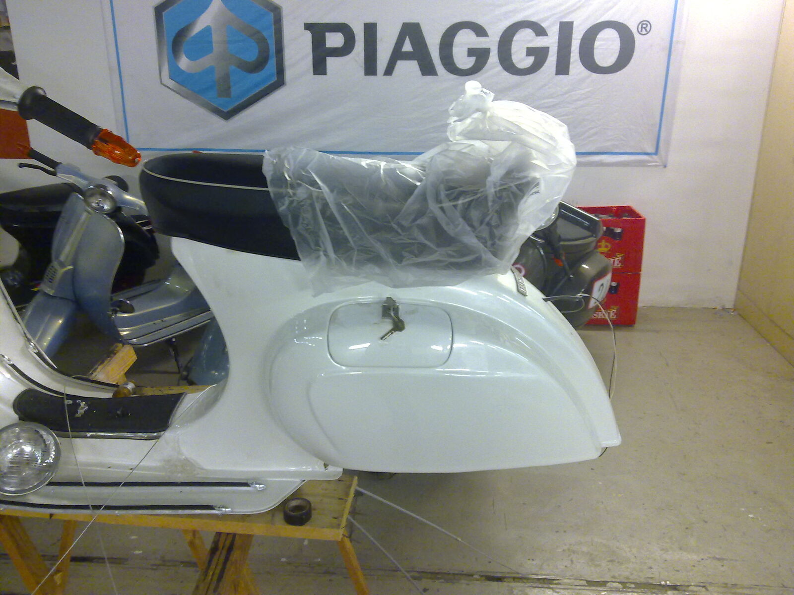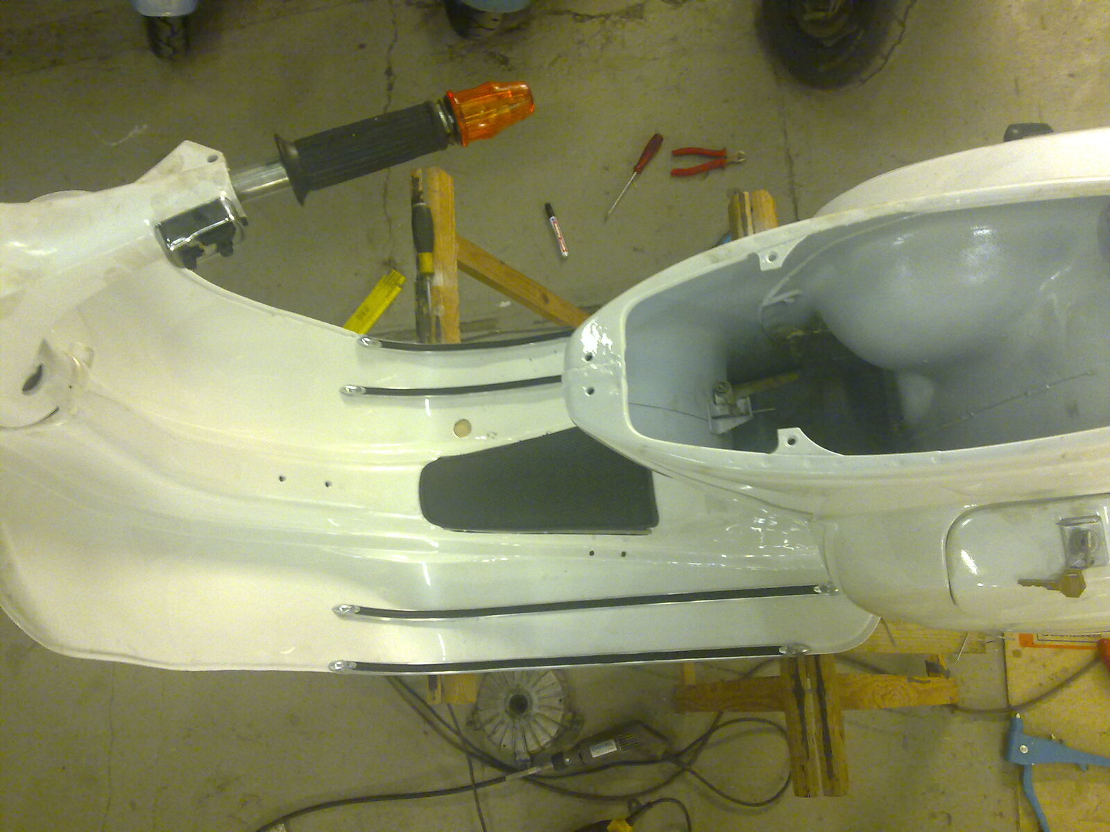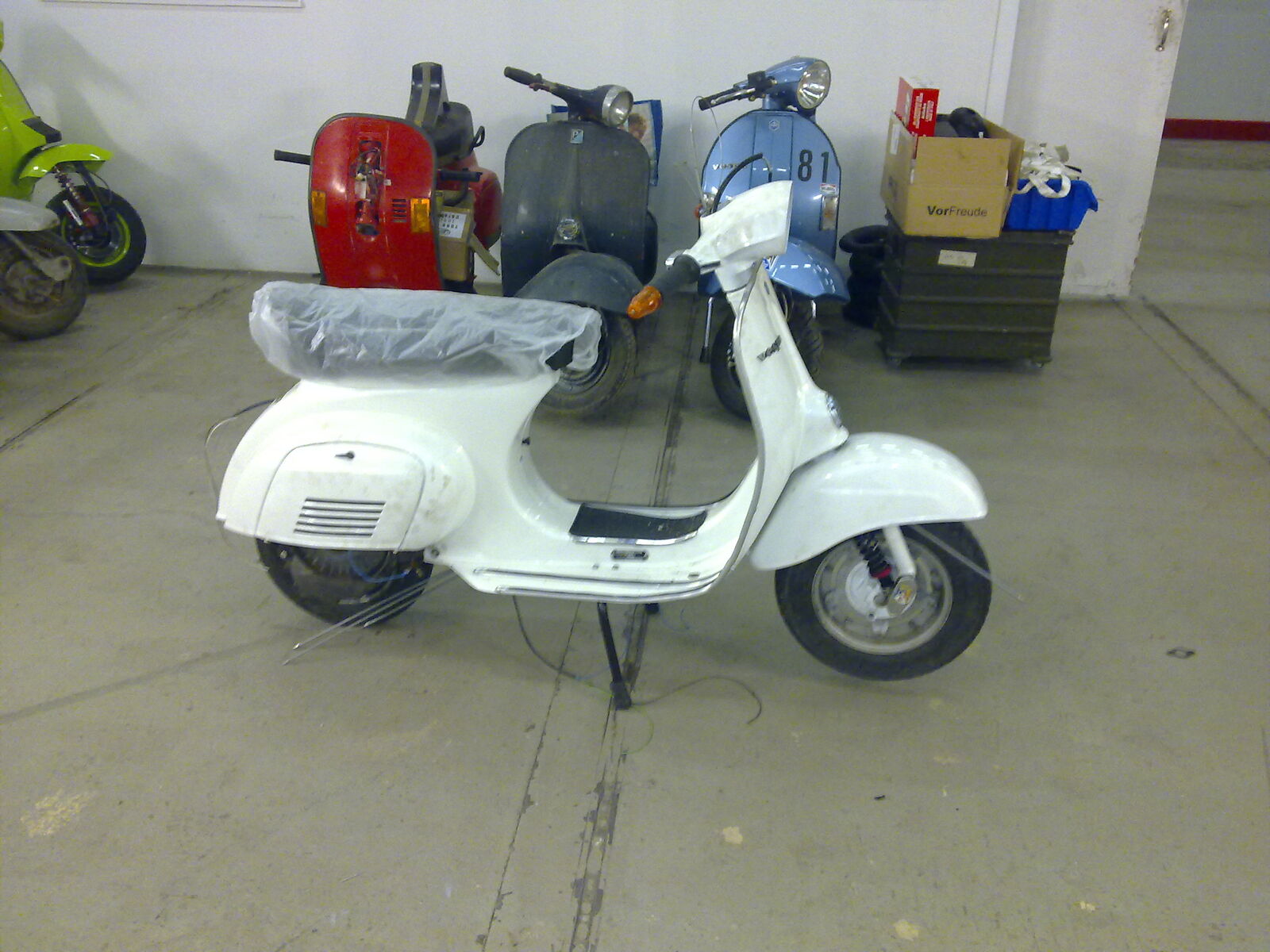 sie steht, sie rollt, ich hoffe, sie stinkt auch, wenn der motor läuft. jetzt muss ich dem christian noch seinen langhubkrümmer mit dickem rohr aus den rippen leihern