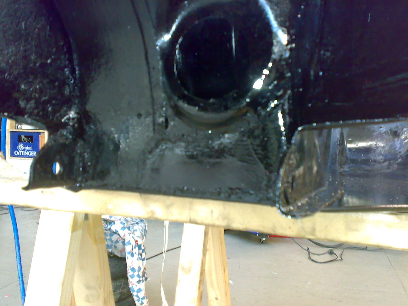 so, heute hab ich 2 schichten brunox epoxy rostumwandlungsgrundierrostschutzeierlegendewollmichsau-zeug draufgesprüht. hab davon jetzt keine fotos, aber hier und da muss ich schon noch eine kleinigkeit spachteln. unebenheiten sieht man bei einfarbigen geschichten deutlich besser. naja, jenachdem ob schatzi morgen weiter spinnt oder nicht, gibts morgen bilder und spachteln, oder nicht ![]()