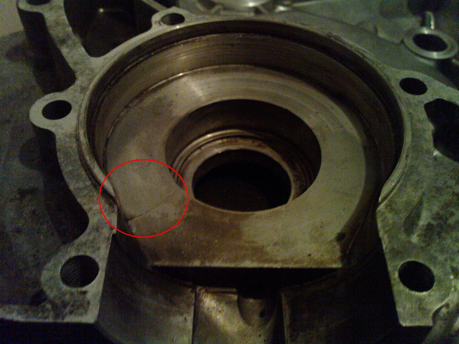 Allerdings kam deim Putzen der zweiten Hälfte dann der Schock - ein Riss im Motorblock in der "Aussparung", in der eigentlich die Kurbelwelle läuft...