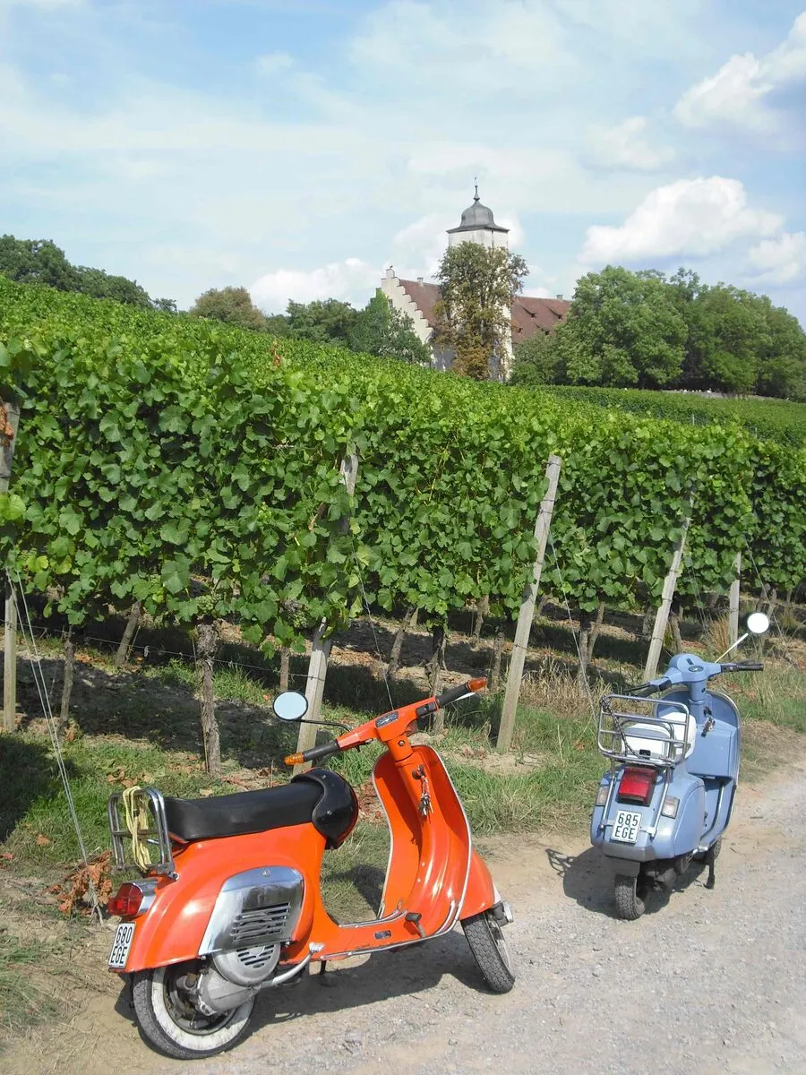 Das Foto is vor der Schloss Hallburg entstanden, ca 30km von Würzburg entfernt (Vespageeignete Route). War eine von 4 kleinen Ausrollerungen, die wir dieses Jahr geschafft haben zu organisieren( wie immer halt, 15 SFs sagen zu und 5 kommen ;) )