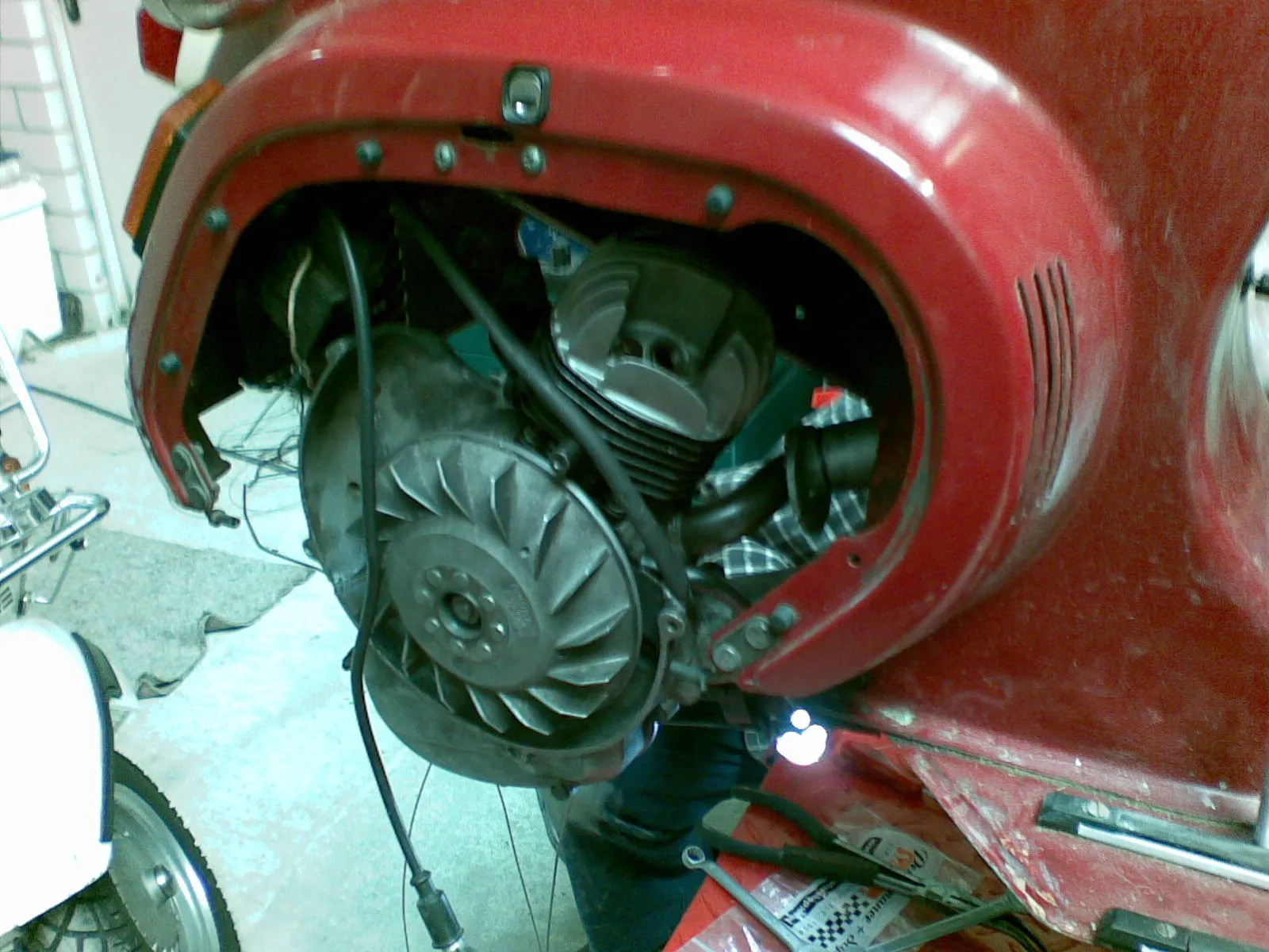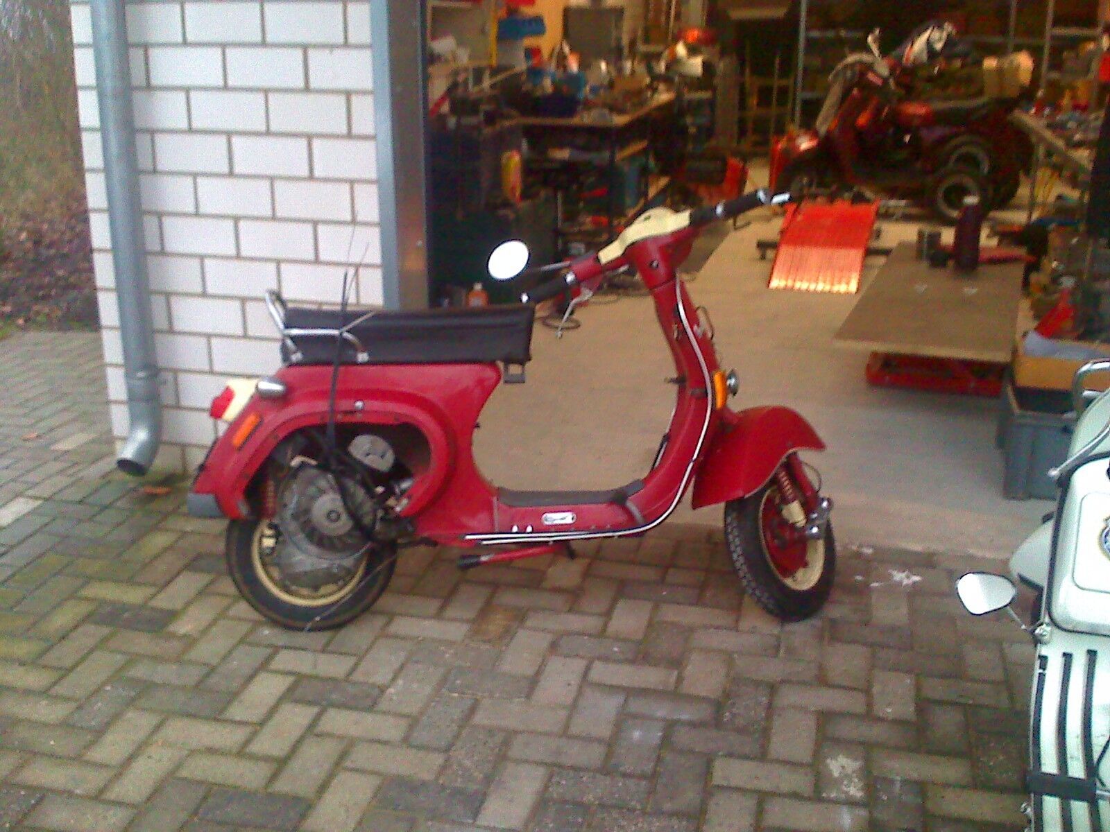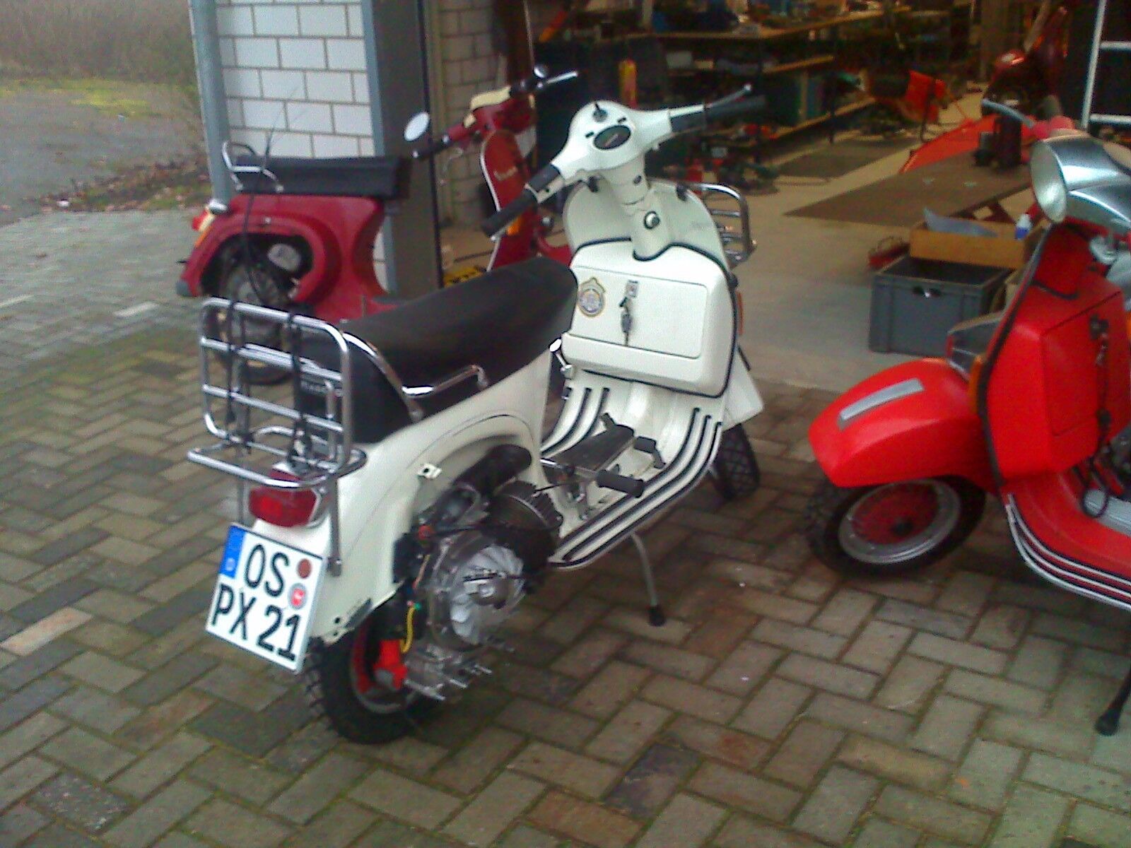 Weiße PX 80 bekommt einen 200erter Motor, andere Sitzbank und ein paar Schmuckstücke.