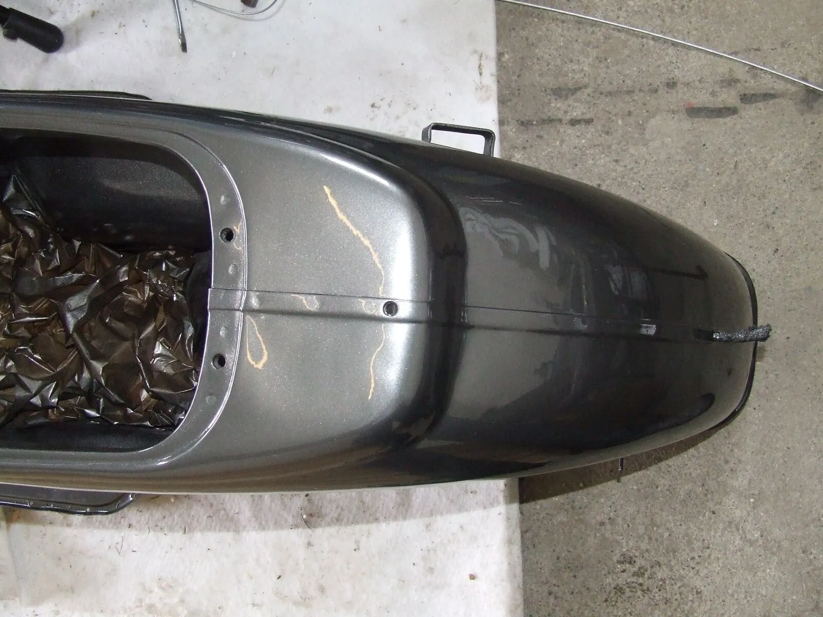 Der Roller ist für die erste Probefahrt fertig gemacht worden.