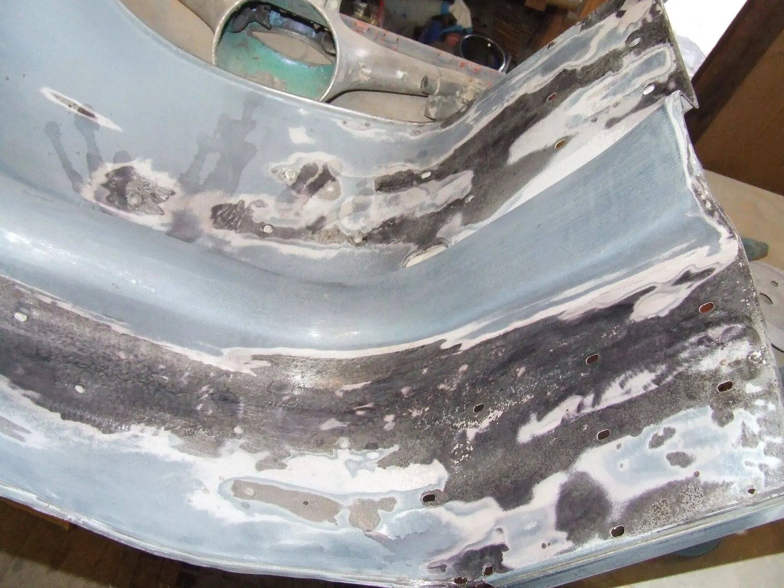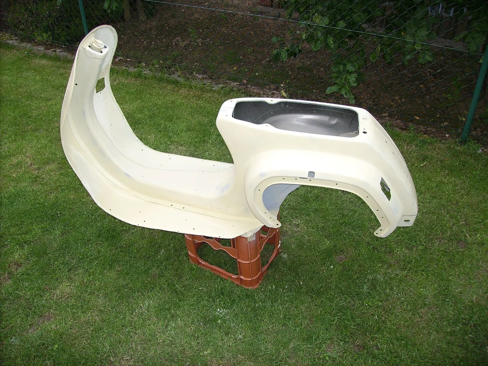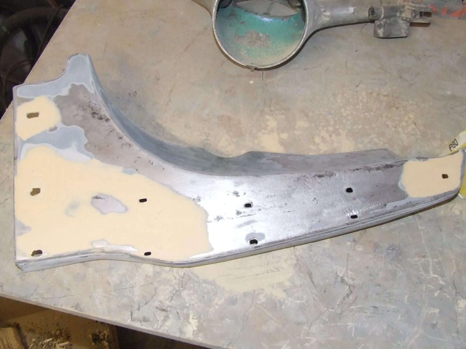 Rahmen vom schicken grünen Kunstharzlack befreit, grundiert, gefüllert und fast fertig geschliffen. Vielleicht kommt diese Woche noch der Neulack in zartem pastell-mattschwarz drauf: