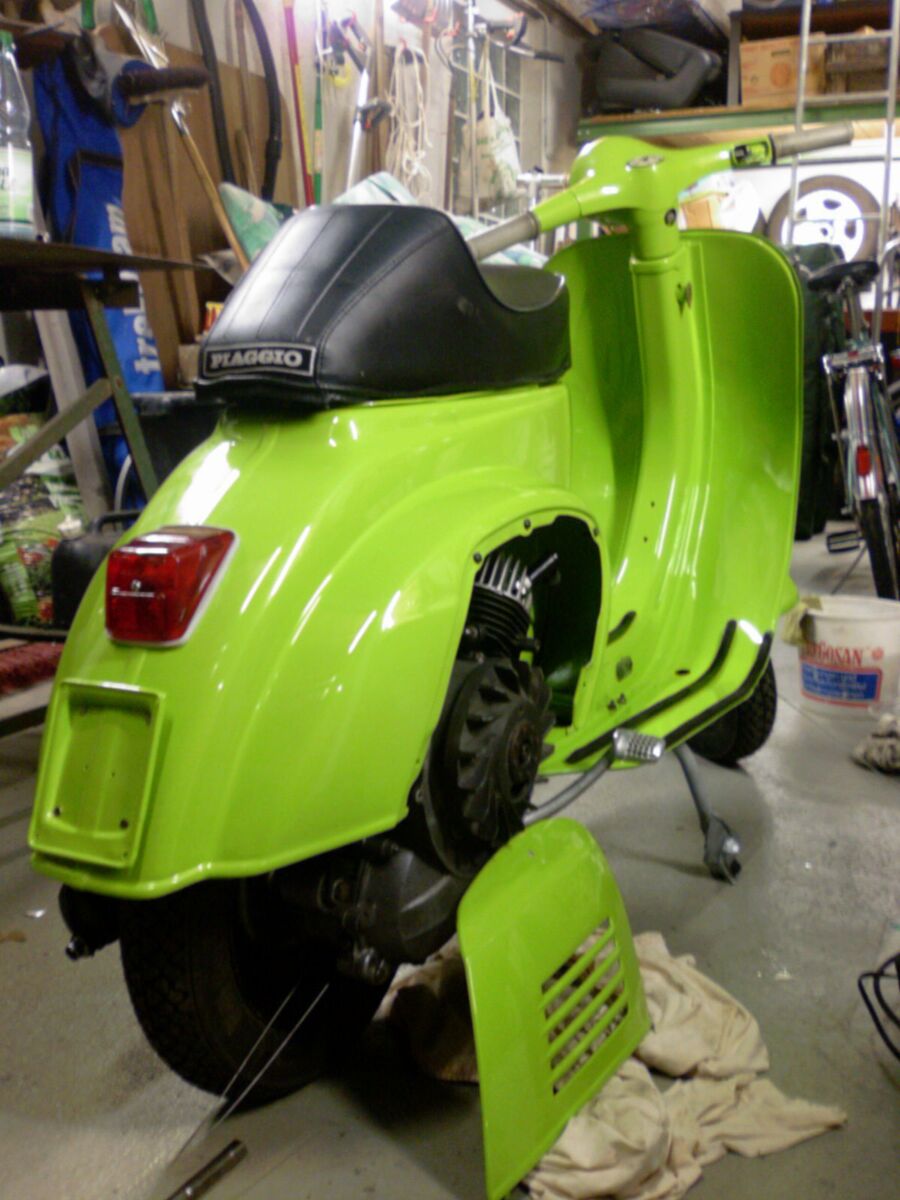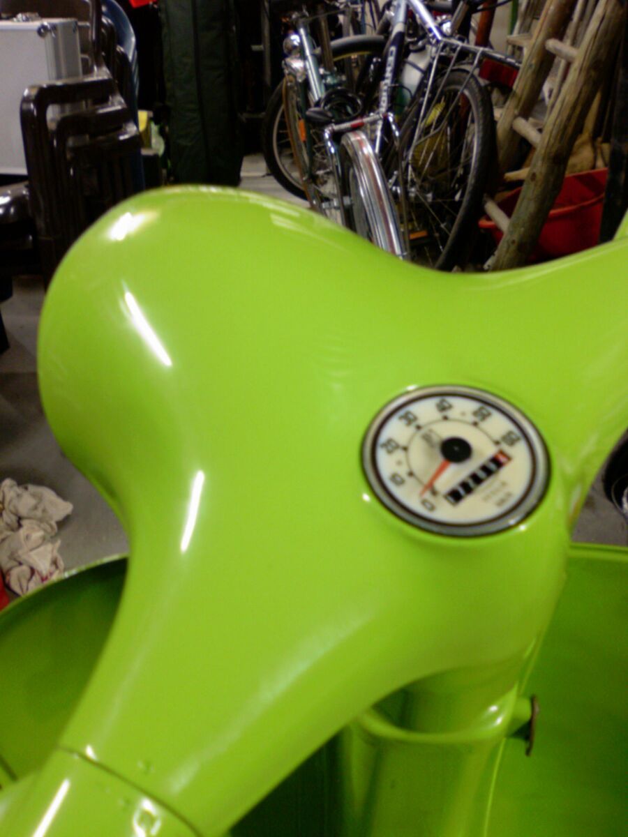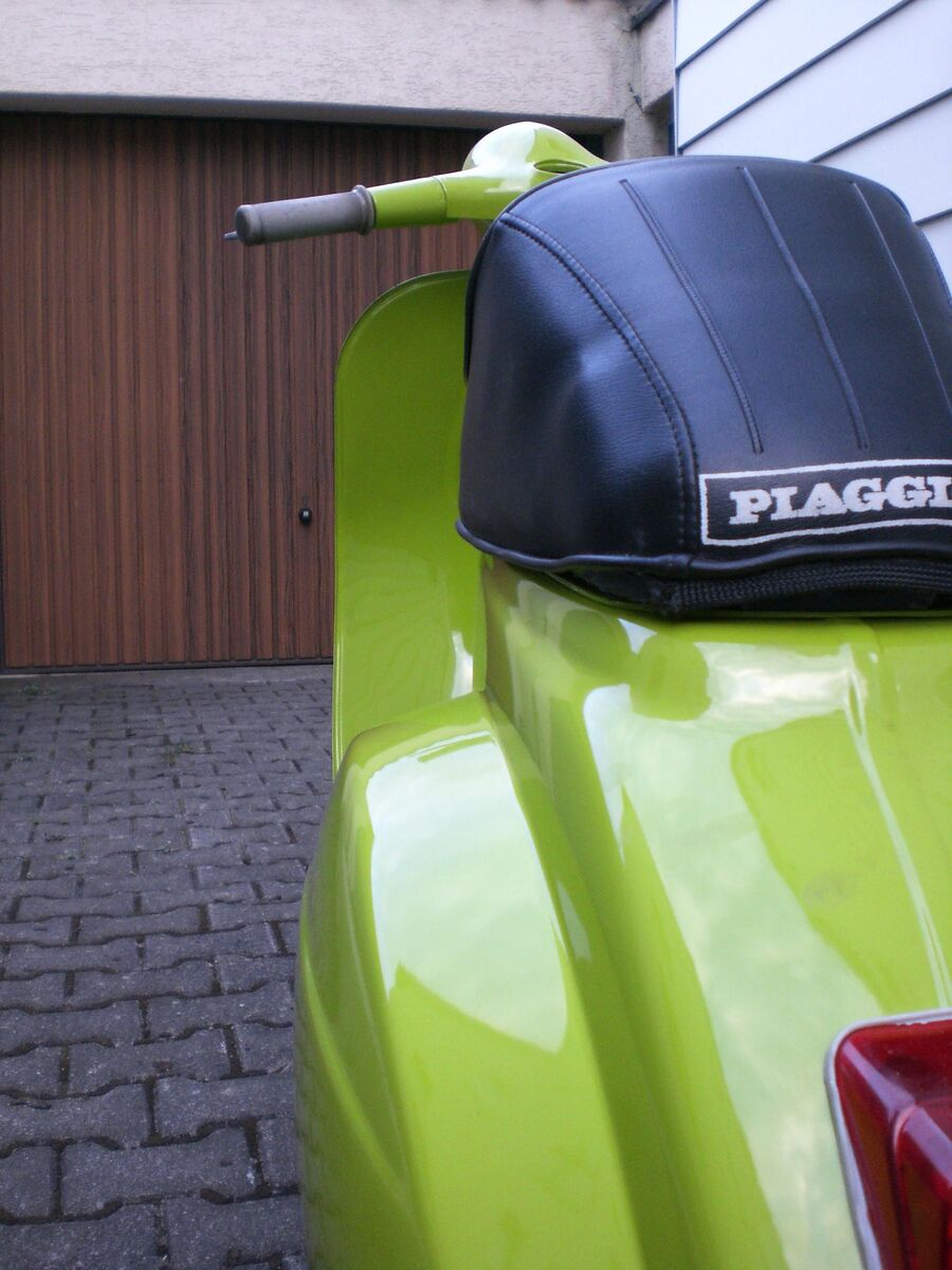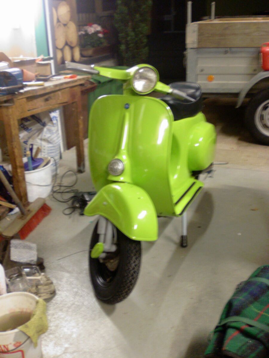 also ich find's äußerst schick, gerade wegen der farbkombi mit den schwarzen rädern/trittleisten/auspuff. schöne details auch – z.b. die grün lackierte schwingenabdeckung.