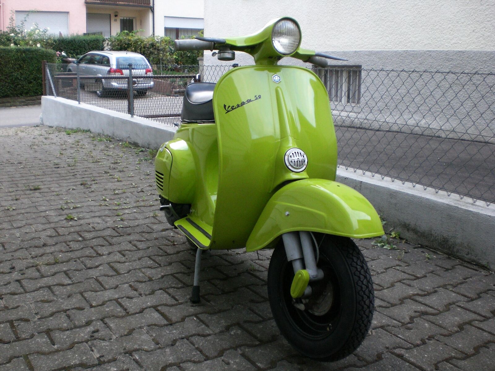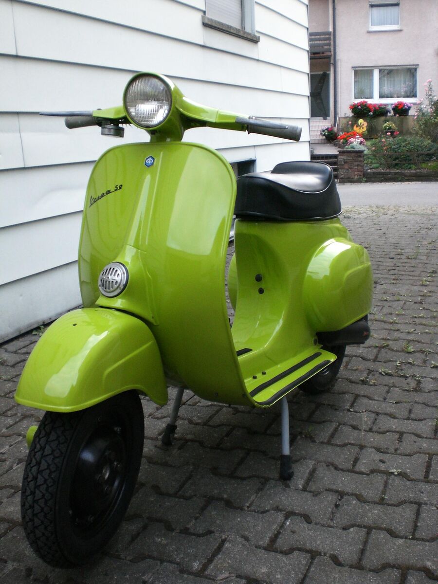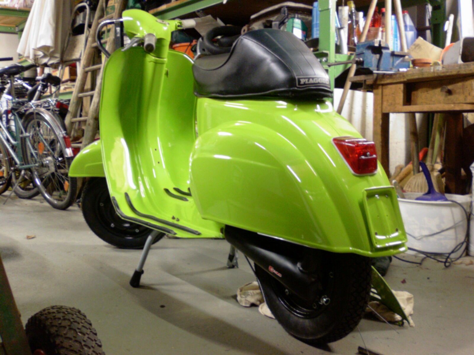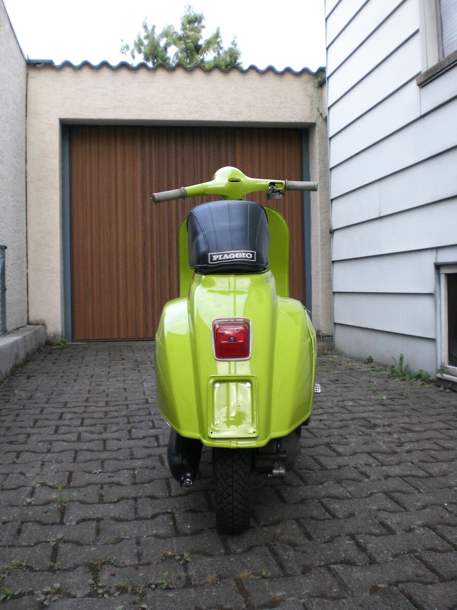 also ich find's äußerst schick, gerade wegen der farbkombi mit den schwarzen rädern/trittleisten/auspuff. schöne details auch – z.b. die grün lackierte schwingenabdeckung.