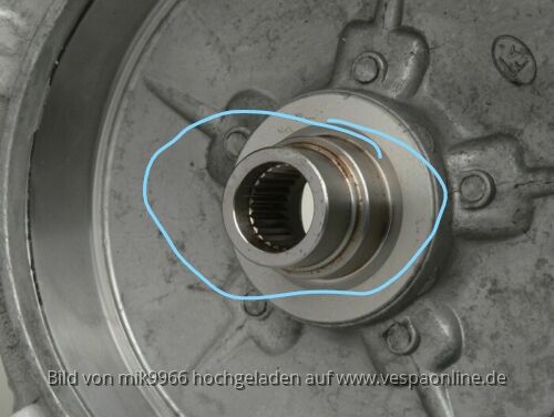 Wer auf einem SF-Motor eine PK-Trommel verbauen will, muß neben der anderen Bremsankerplatte, den Bremsbacken und der Mutter auch angepasste U-Scheiben verwenden.