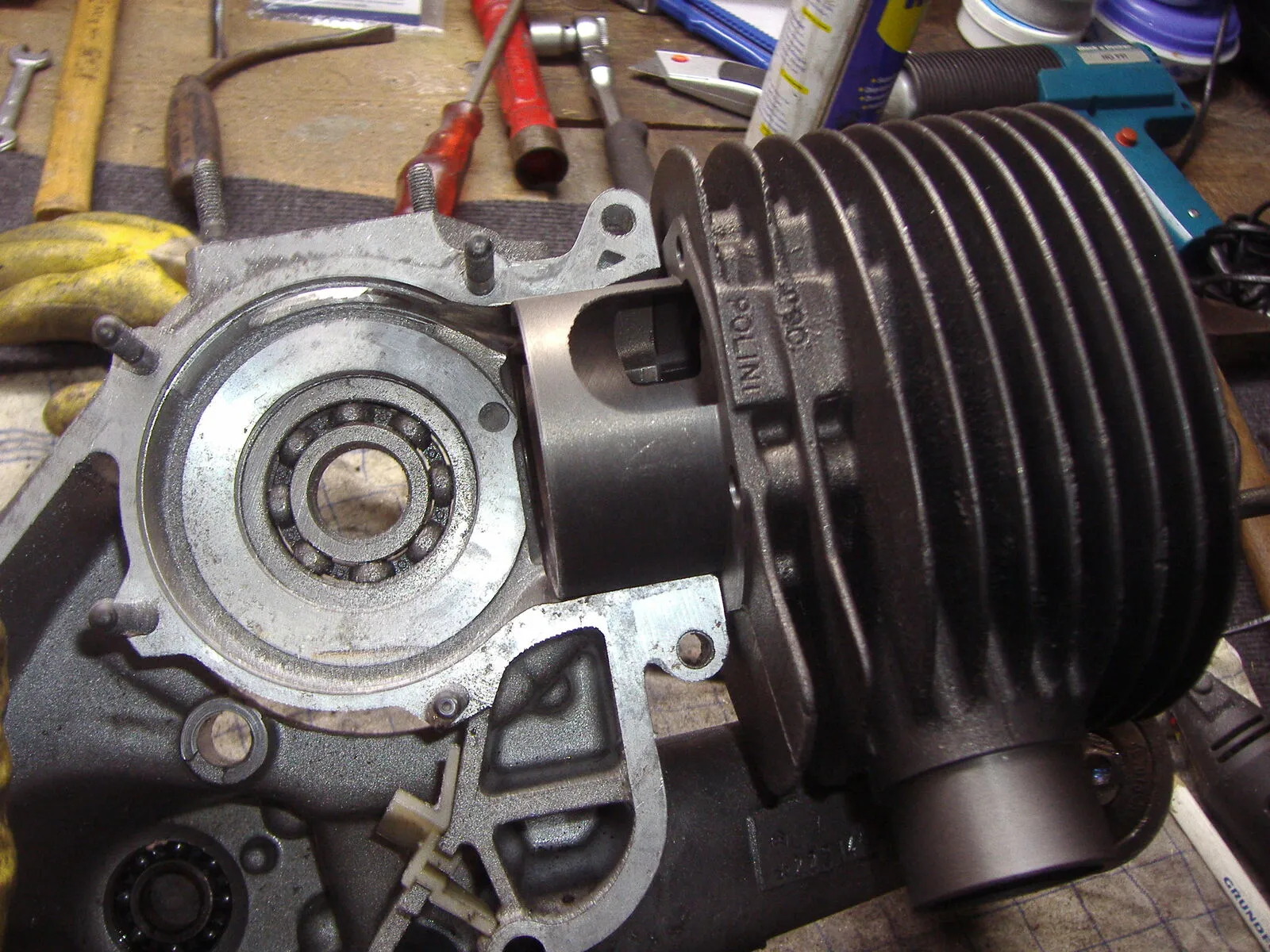 Habe eben weiter am Motor gearbeitet und meine ersten Fräß bzw Schleifarbeiten hinter mir.Macht übrigens richtig Spaß !!!!!