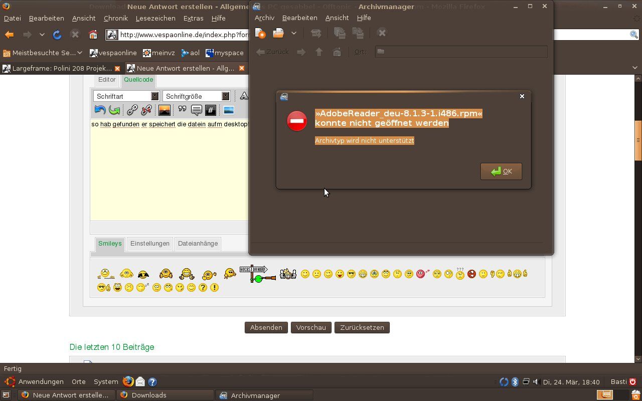 /tmp/AdobeReader_deu-8.1.3-1.i486.rpm konnte nicht gespeichert werden, weil Sie die Inhalte dieses Ordners nicht ändern können.