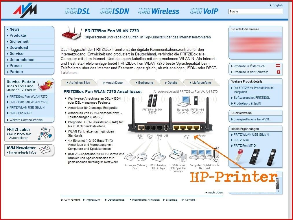 Also, nach 23 min (12 Cent die Min.) telefonieren mit hp, stellt sich heraus das der Drucker nicht fähig ist über die Fritzbox ist zu laufen!