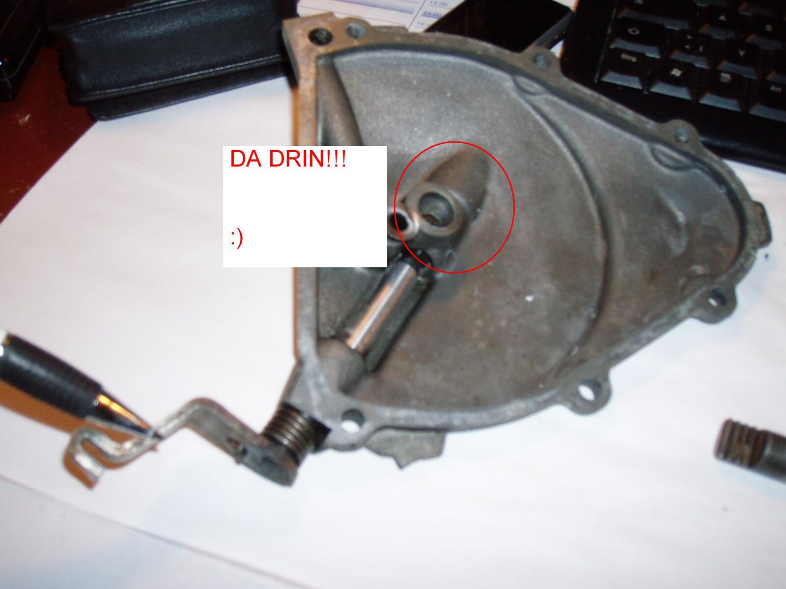 1. Der Kupplungshebel ist ja Federunterstützt , jetzt kann man den Druckpilz so einbauen das bei unbetätigtet Kupplung der Pilz bündig ist im Gehaüse !