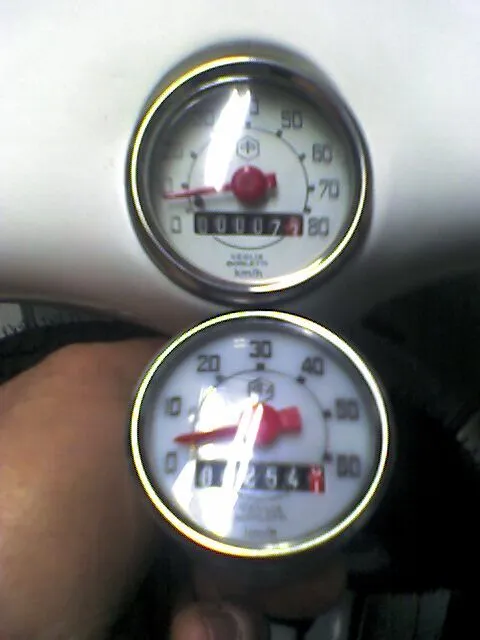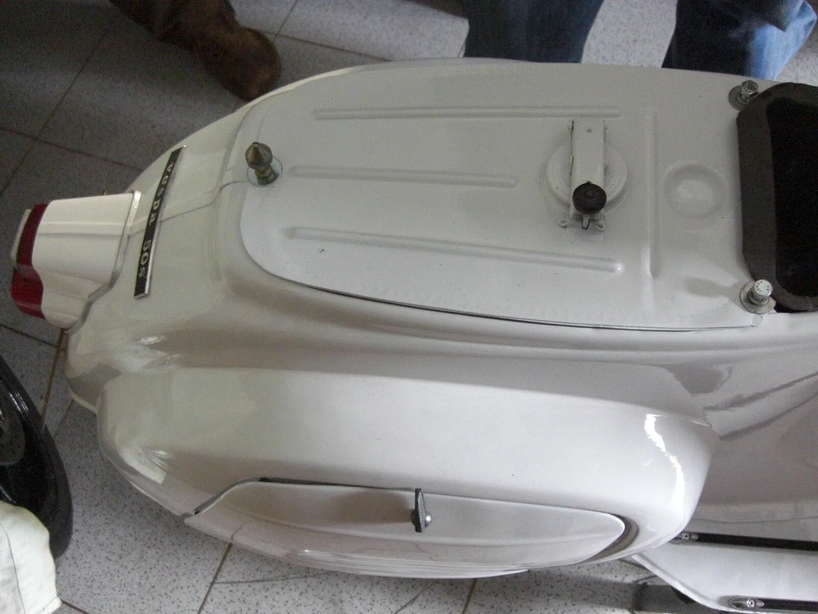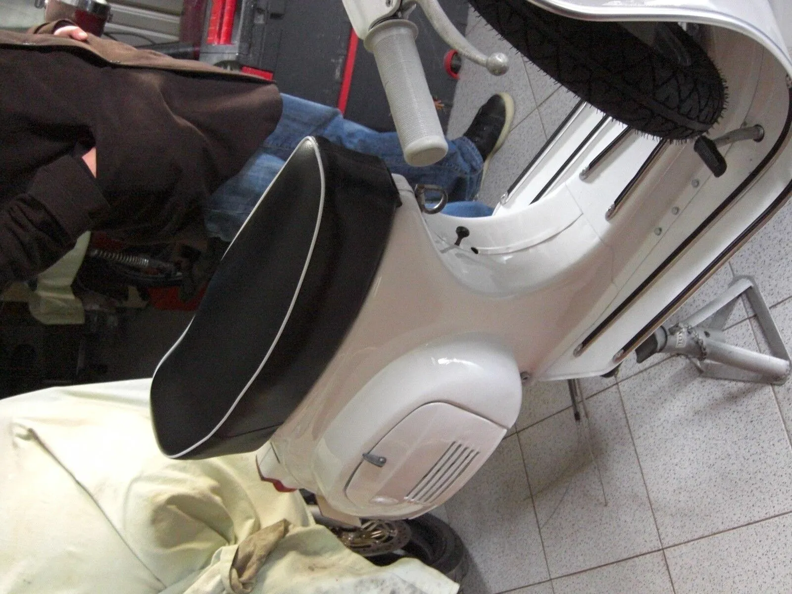 Von der gestrigen schwarzen Vespa wurde mir ja mehr oder weniger abgeraten...auf der Kamera von meiner Freundin sind aber noch einige Bilder von der weissen Vespa die er gerade restauriert: original Tacho und Motor werden noch eingebaut, neue Zylinder etc....