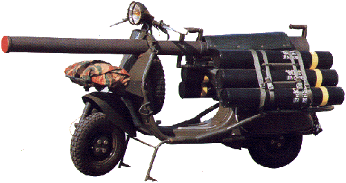 eigentlich gar keine so schlechte Idee mit dem Basi...ich hab´ mir an meine Vespa ein BGM-109 Tomahawk drangebaut. War etwas kompliziert, aber es hat einfach jeden abgeschreckt. Musste dafür lediglich Tank, Räder, Motor,Gabel,komplette Karosserie,Lichter,Lenker etc. abmontieren. Sitz hab ich natürlich dran gelassen, muss ja schließlich irgendwo sitzen.