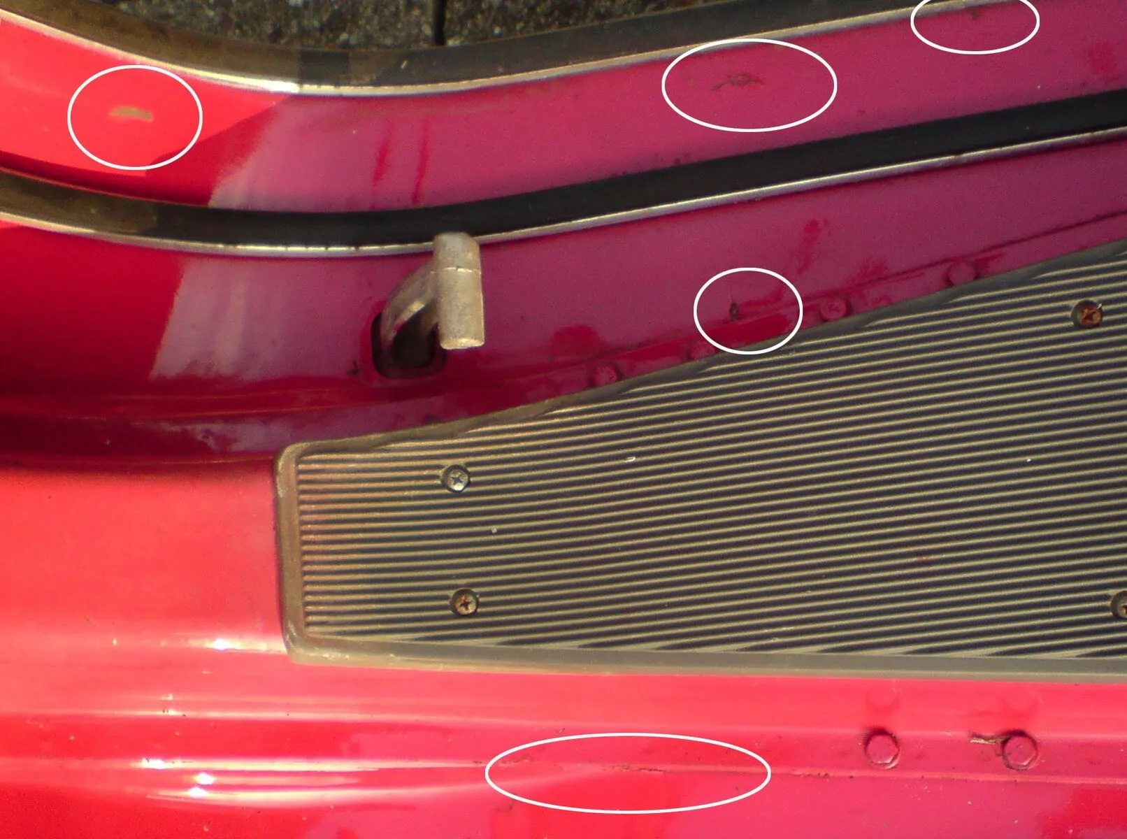 Auch beim Trittblech ist noch Rost unterm Lack. Teilweise ist der neue Lack doch sogar schon wieder abgeplatzt, bzw. an einigen Stellen kommt der Rost schon wieder hoch.