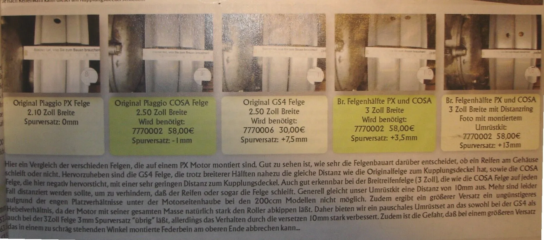 eine orginal px felge hat auf dem px motor o mm spurversatz ist klar