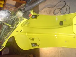 Die Hupe wird am Tunel montiert auf der höhe wo die Schlitze im Beinschielt sind also links neben dem Blinker. Am Tunel sind zwie gewinde eingelassen dort wird sie angeschraubt. Wenn man dann von vorne durch die Schlitze im Beinschield schaut sieht man dan den Hupenkopf.