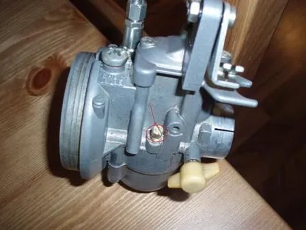 Der Vergaser ist neu. Auf der Messingschraube steht 45. Auf der Schraube des alten Vergasers steht 42. Wie kommt das. Warum dreht sich die Schraube immerwieder raus? Siehe roter Pfeil im Bild.