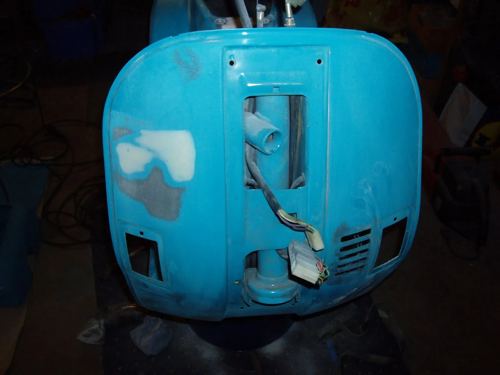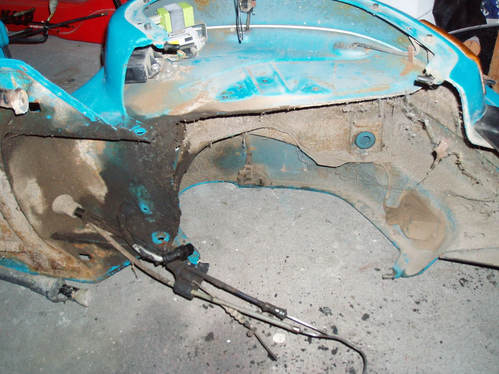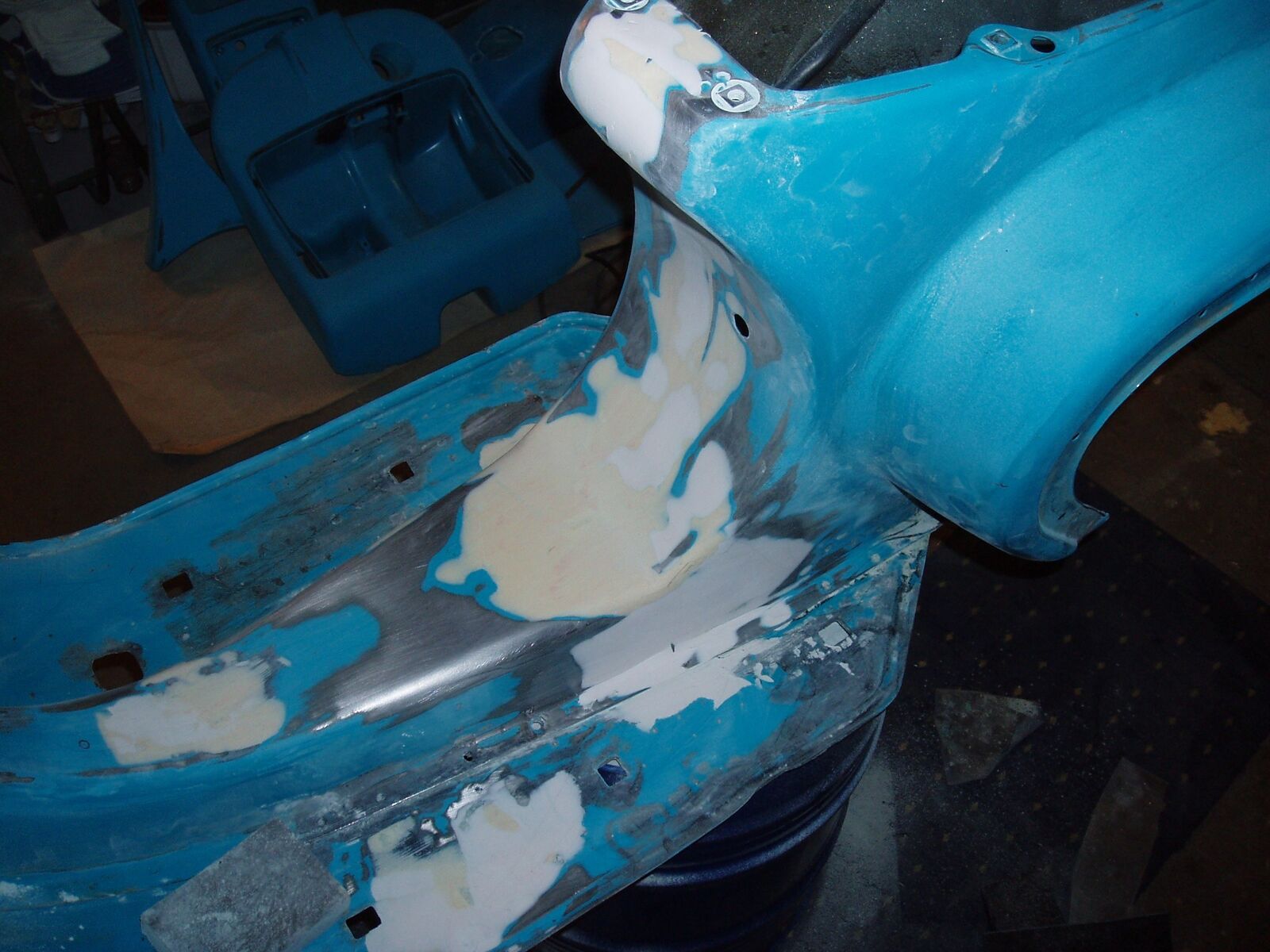 • so habe heute die spachtelarbeiten abgeschlossen !habe diese stellen gespachtelt weil alles schön klat sein soll und die verarbeitung und schweißpunkte von piaggio so tief sind das wasser drin stehen könnte genauso der übergang am rahmentunnel vom heck zum frontteil unterhal des bezinhahnes ist orgial nicht grade sehr schön verarbeitet!bei der xl2 mit gummimatten ist das egal weil mann es nicht sieht!aber ich will trittleisten montieren und deswegen habe ich das alles gespachtelt!!!war zwischendurch mahl krank und hatte auch viel stress arbeittechnisch(job)wollte eigenlich schon weiter sein !!nun gut alsnächstes wir gefüllert -grundiert!!!hier aktuellebilder vom 10.03.2009