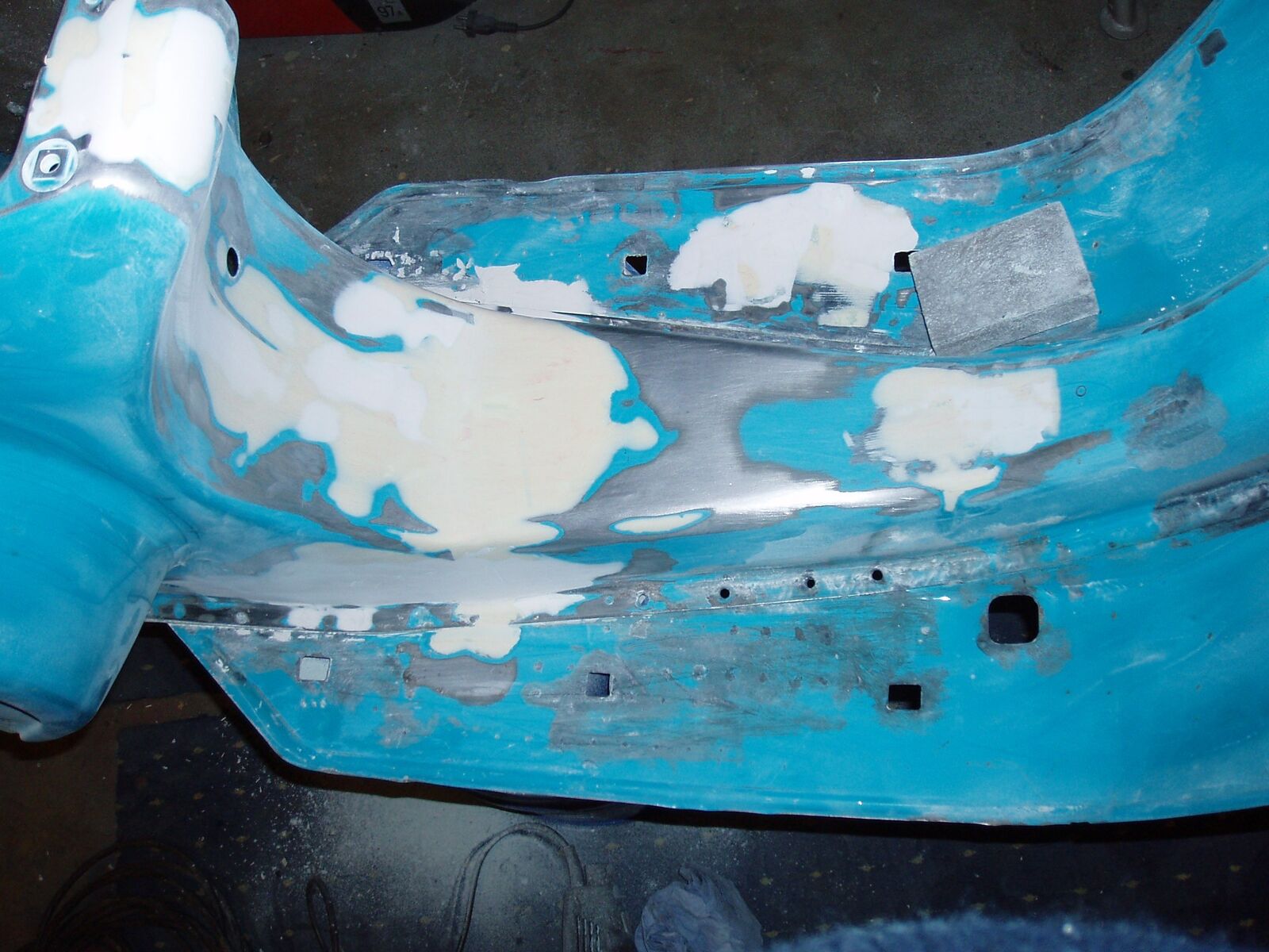Wollte am Trittblech auch an manchen Stellen die kleinen Rostkrater abspachteln, da später bei mir auch Trittleißten montiert werden.