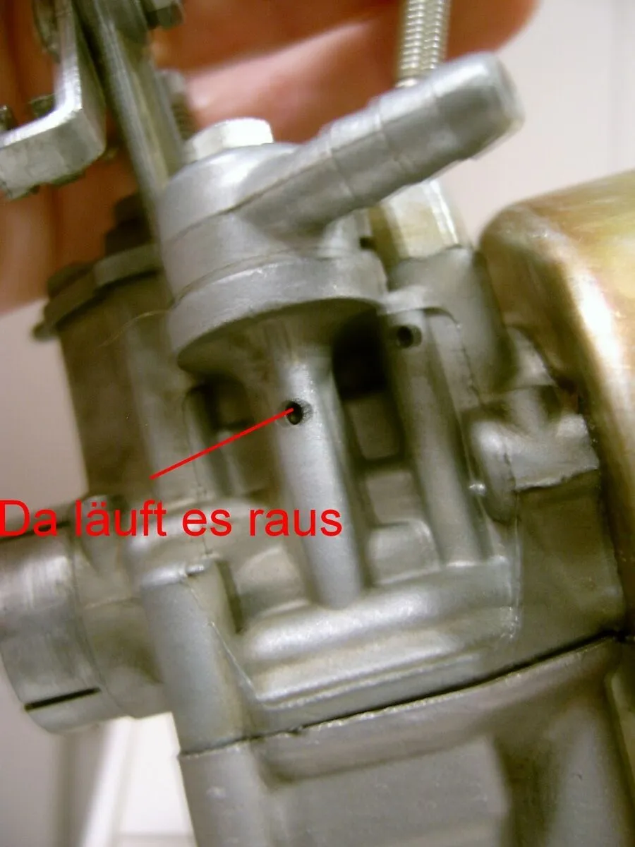 Allerdings läuft der Vergaser über (und das Benzin kommt aus dem oben gezeigten Loch).lg,