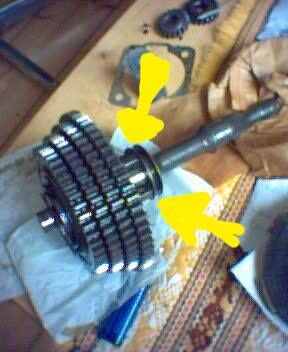 Sei vorsichtig beim Rausschlagen der Welle, da die Schaltgabel da dran hängt.