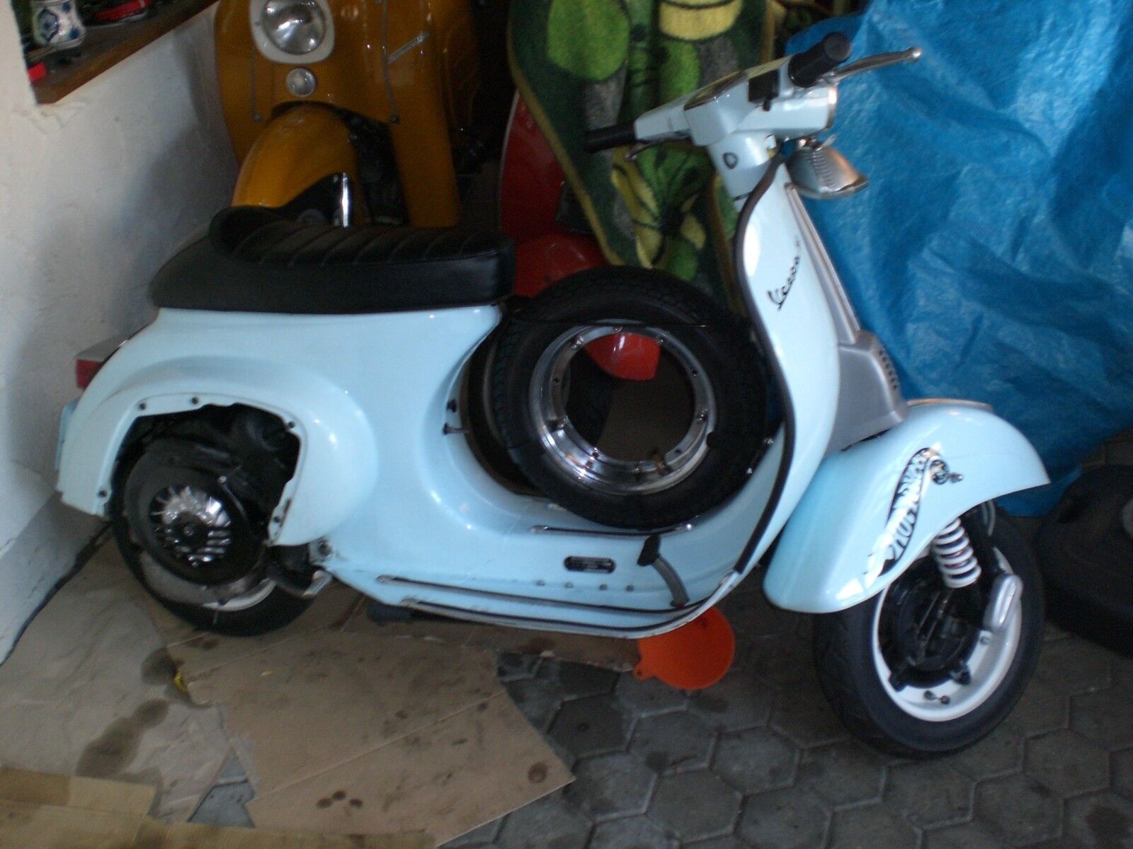nachdem mir gestern ein stehbolzen am ansaugstutzen durch vibration abhanden gekommen ist, habe ich mir heute zwei neue drehen lassen, welche ich bereits verbaut habe. da ich hierführ den motor abgesenkt habe und ich gerade lust dazu hatte, habe ich den 102 pinasco, den ich neulich günstig von nem kumpel abgreifen konnte, draufgesteckt und die karre gleich abgedüst. nun ist das teil echt gut zu fahren!! hängt schön am gas und dreht jetzt auch willig voll aus