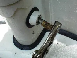 habe die neue Niete gekürzt damit sie ganz reinging aber richtig fest wurde sie auch nicht, deswegen die Abdeckung rundherum unsichtbar mit etwas Kaltmetall angeklebt