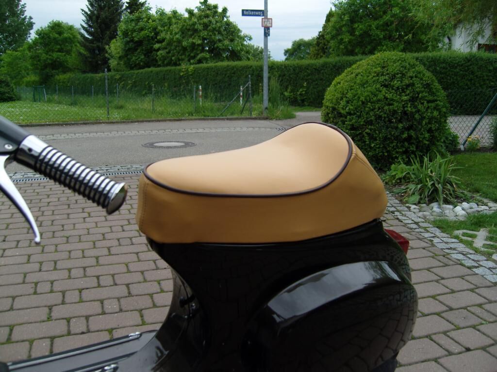das cocnatbraune leder passte als sitzbezug mal garnicht zur vespa.