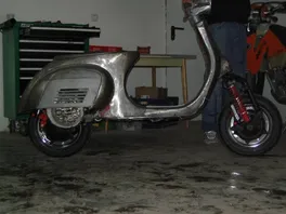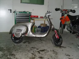 115 ccm malossi, 20er malossivergaser, verstärkte kupplungsbelege + feder von malossi, 4 ganggetriebe , 2,86er übersetzung, rennwelle mit 20er konus, elektronische pk zündung mit einem abgedrehten pk lüfterrad (vielen dank noch mal an shova50) und eine banane