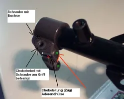 Kann mir jemand einige Bilder senden, wie der Chokehebel befestigt wird und wie der "Zug" montiert wird?