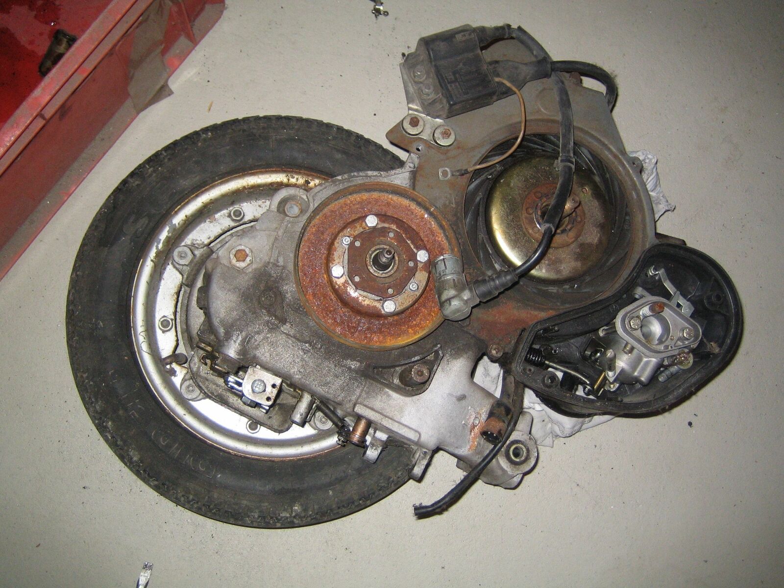 ... kommen wir der Wahrheit schon etwas näher. Der abgebildete Motor dürfte mit großer Wahrscheinlichkeit aus einer xl1 stammen (die xl2 hatte keinen Kicker mehr), also nicht aus der Automatica S. Es fehlt ein Teil der Kupplung und die Variomatik. Die Reste der Kupplung sind auf keinen Fall aus 'ner Pluri.