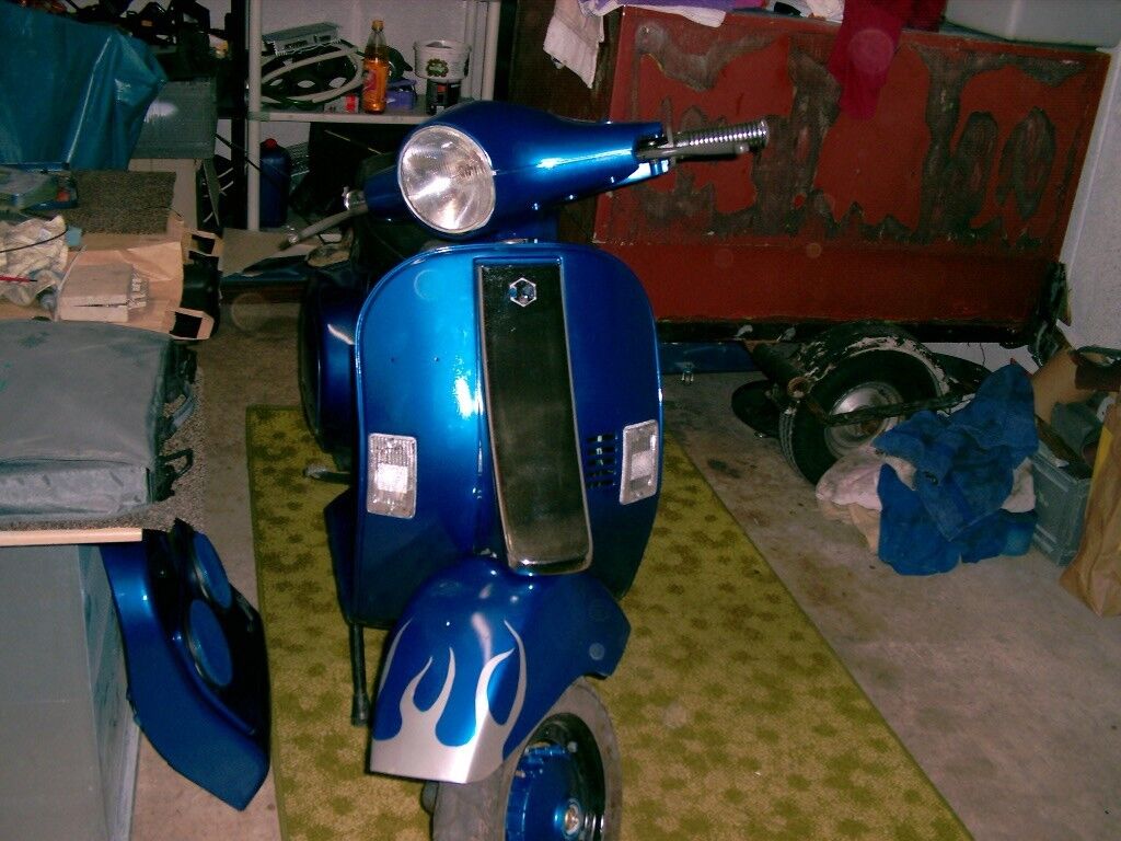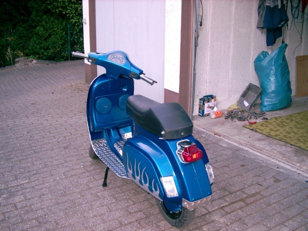 Leider hab ich nen Problem mit dem Vergaser, eine Schraube (vom Überlauf) ist rundgelutscht und somit ist das Teil undicht und tröpfelt. Nichts desto trotz habe wir die Vespa mehr oder weniger fertig bekommen. Muß quasi nur noch die Sitzbank und die Bleche befestigen und das Gerät dann einfahren..Hoffe, dass jetzt nix mehr dazwischen funkt. Ach ja, neue Embleme muß ich ja auch noch bestellen... -